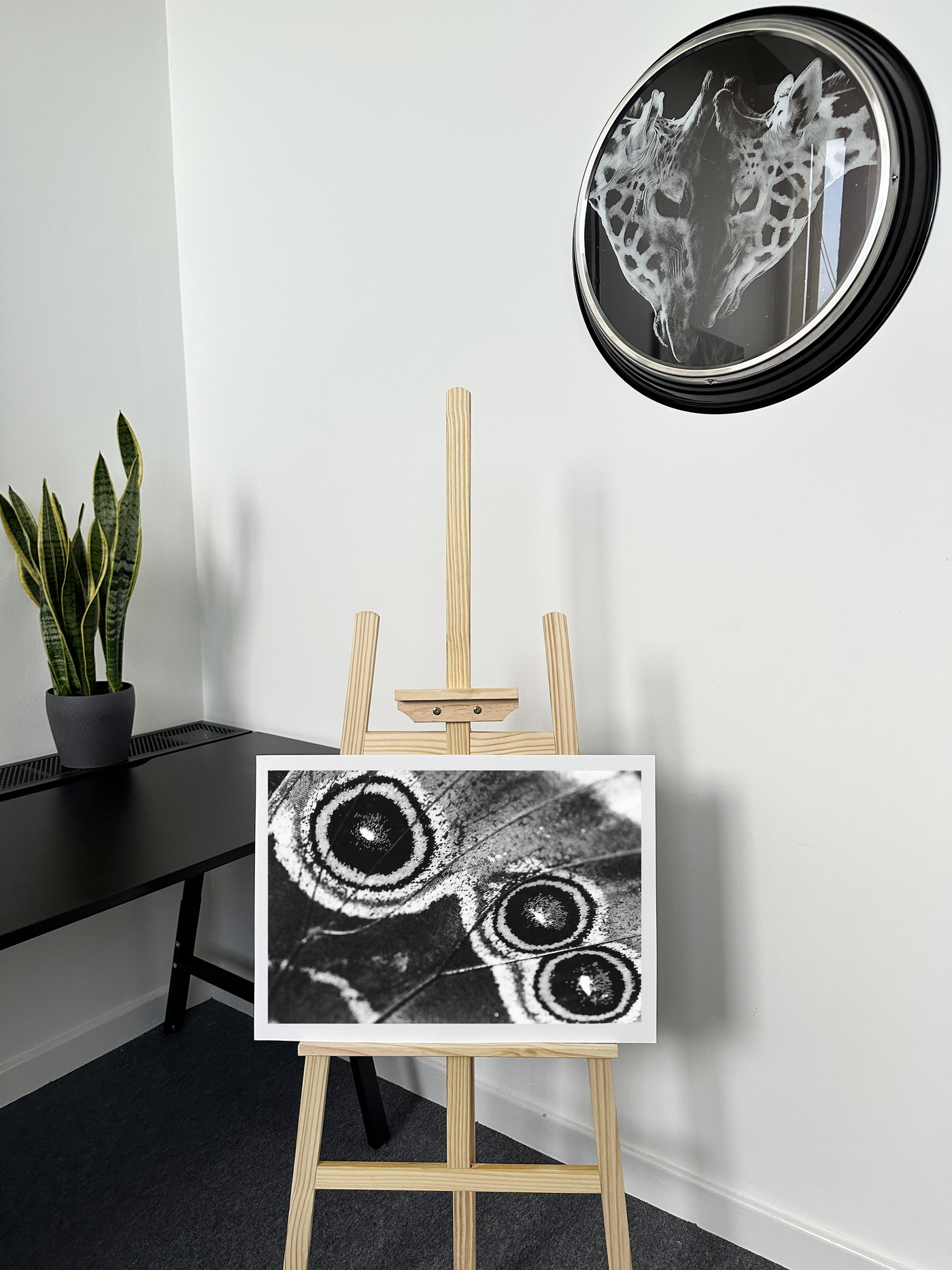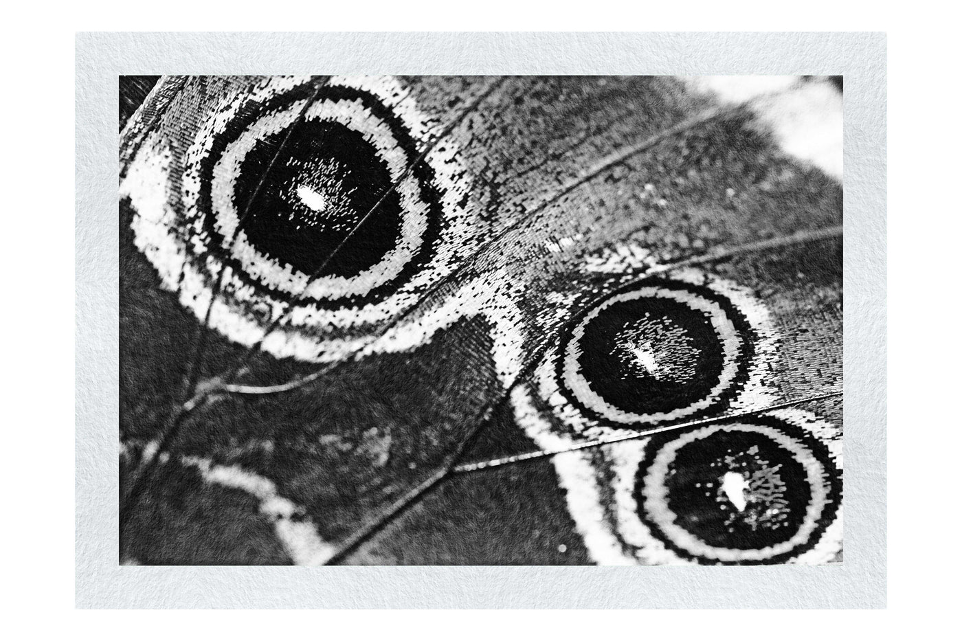 Our premium printing techniques ensure that every nuance of Monochromatic detail is faithfully reproduced on the Fine Art paper. The matte finish reduces glare, allowing viewers to appreciate the complex structures and patterns of the eyespots from any angle. The Fine Art print texture also adds depth to the image, emphasising the three-dimensional quality of the wing scales and the illusion of depth within each eyespot.