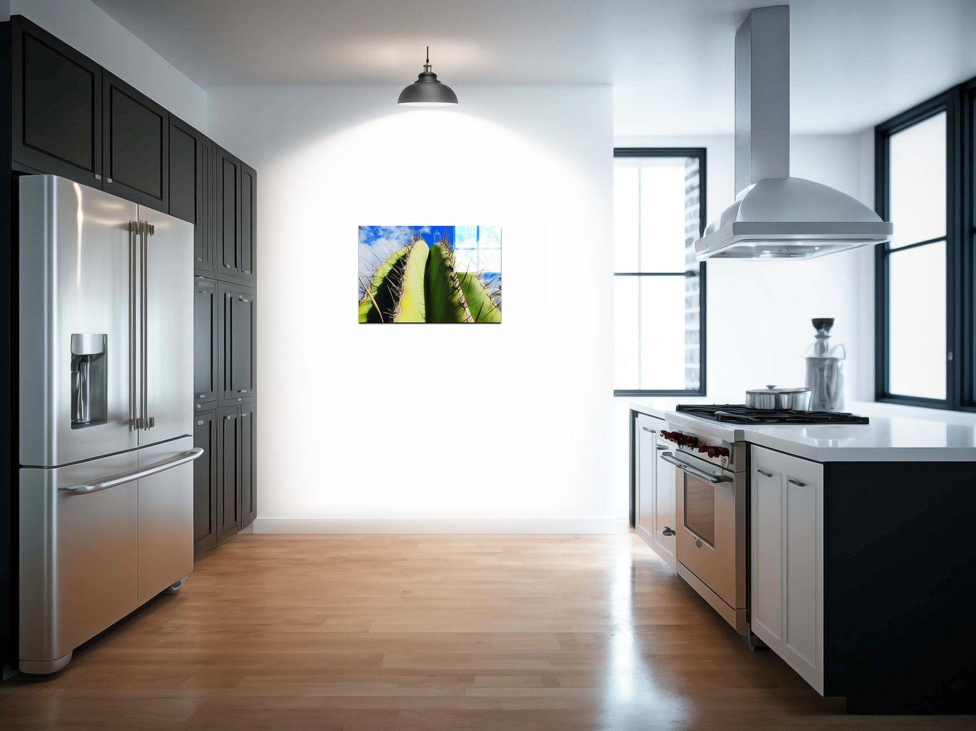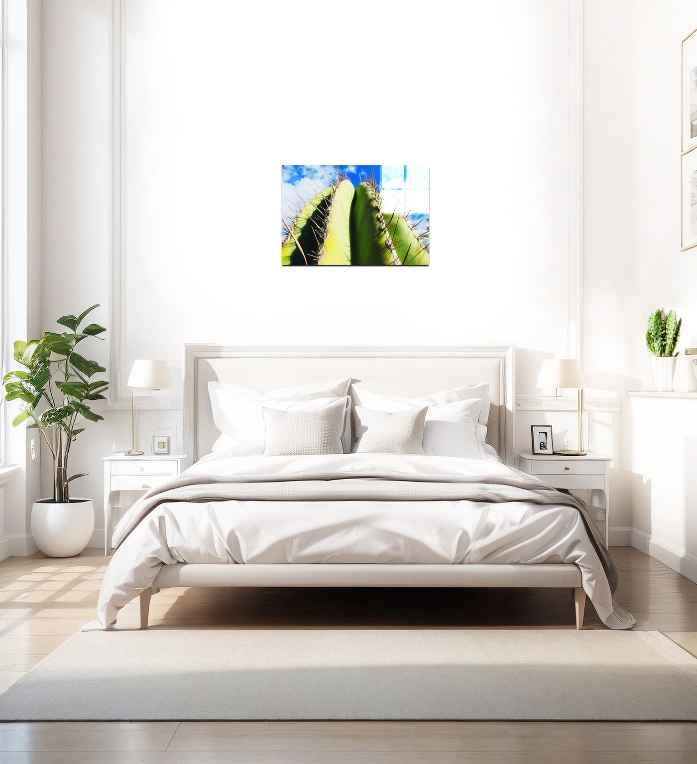 Protected behind crystal-clear Acrylic, this image gains remarkable depth and clarity. The Acrylic layer acts as a protective lens, enhancing the image's colours and sharpness while safeguarding the print, while light interaction with the Acrylic intensifies the contrast between the cactus's sun-drenched ridges and shadowed valleys.