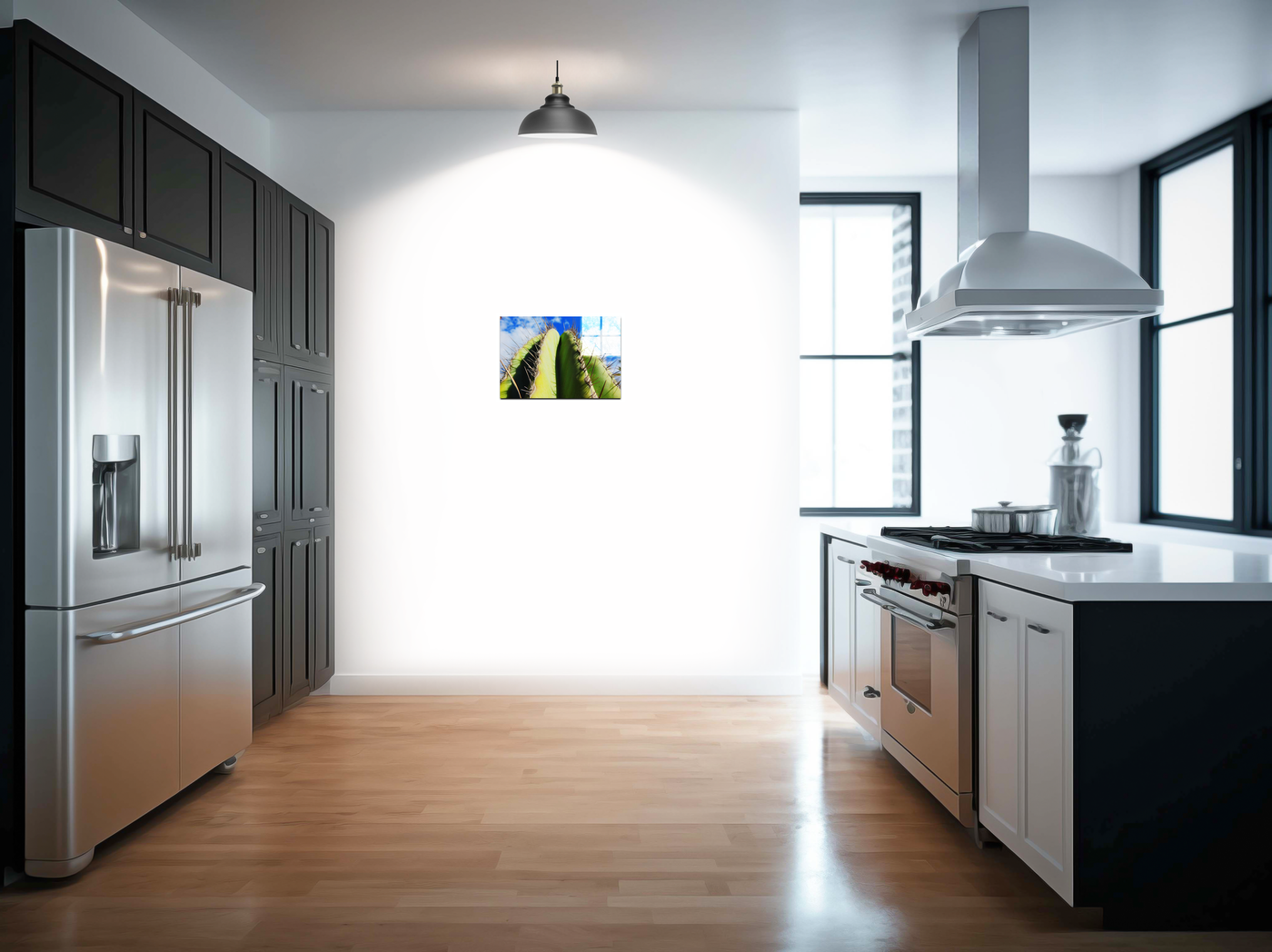 Protected behind crystal-clear Acrylic, this image gains remarkable depth and clarity. The Acrylic layer acts as a protective lens, enhancing the image's colours and sharpness while safeguarding the print, while light interaction with the Acrylic intensifies the contrast between the cactus's sun-drenched ridges and shadowed valleys.