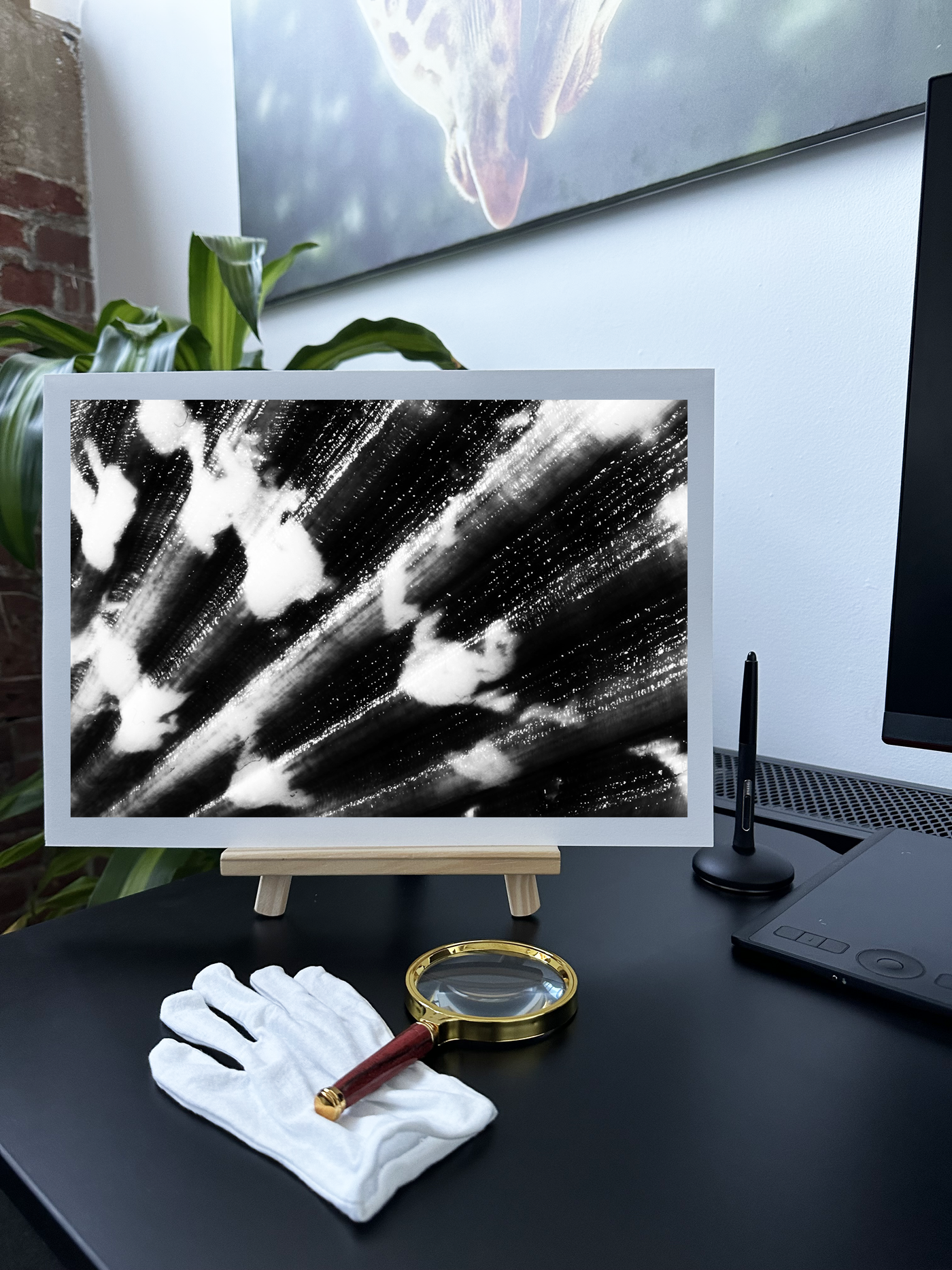 Our carefully handmade monochrome fine art prints are produced on Hahnemühle 308 matte cotton rag paper using Epson archival inks for exceptional detail and color accuracy. Each print features clean, precise edges and a textured surface that brings depth and richness to your chosen artwork, creating a gallery-worthy presentation.