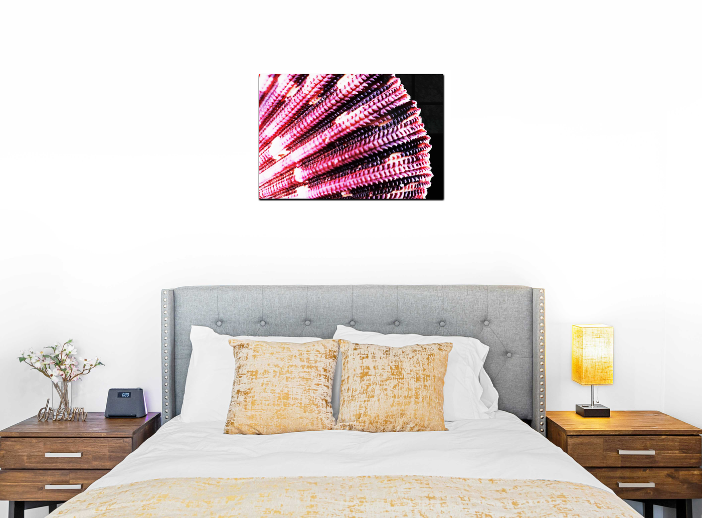 Enjoy as a strong feature to warm your home or workspace, showstopping in its spectacular vibrancy. If you want a close-up, check out the sister image Cerise Calico Shell