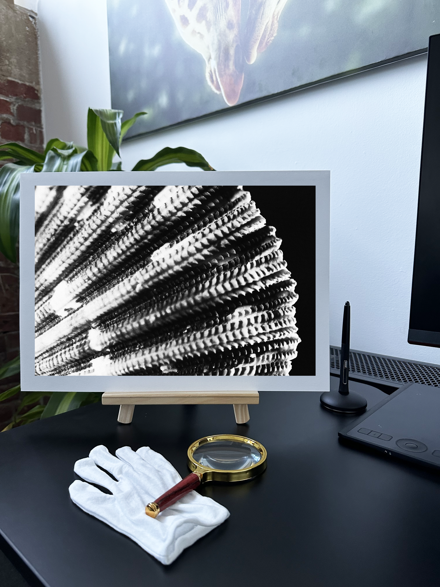 Our carefully handmade monochrome fine art prints are produced on Hahnemühle 308 matte cotton rag paper using Epson archival inks for exceptional detail and color accuracy. Each print features clean, precise edges and a textured surface that brings depth and richness to your chosen artwork, creating a gallery-worthy presentation.