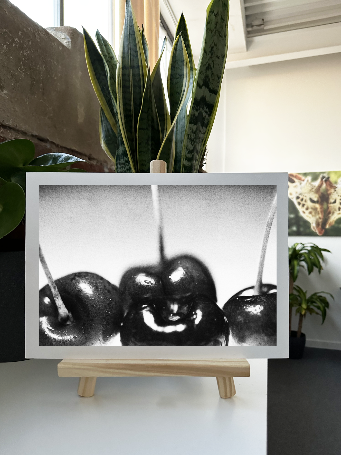 Printed on high-quality Fine Art paper, this image takes on a natural, tactile quality that adds depth to its visual appeal. The texture subtly enhances the cherries' rounded forms, while the matte finish brings out the richness of the Monochrome tones. This Monochrome Fine Art print will instantly add a fresh, contemporary touch to your kitchen, dining room, or any space that could use a splash of vibrant colour.