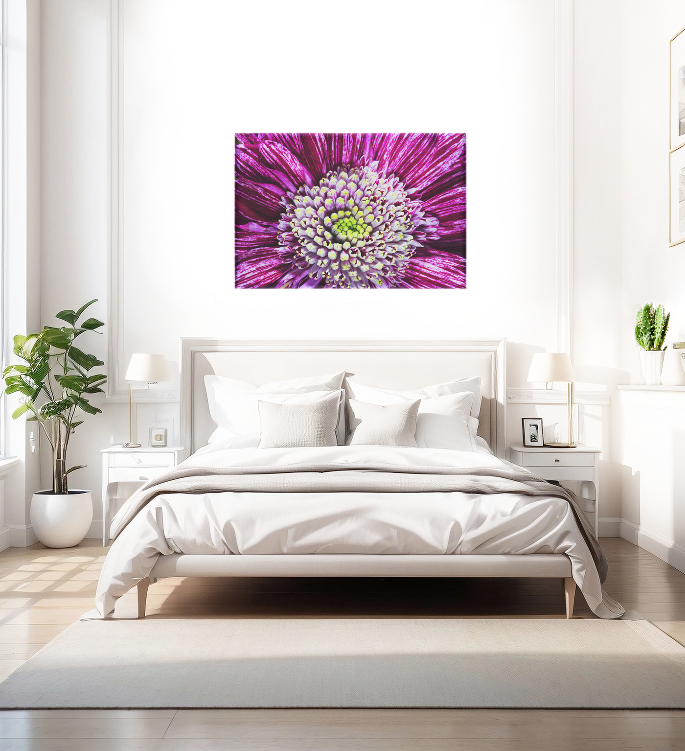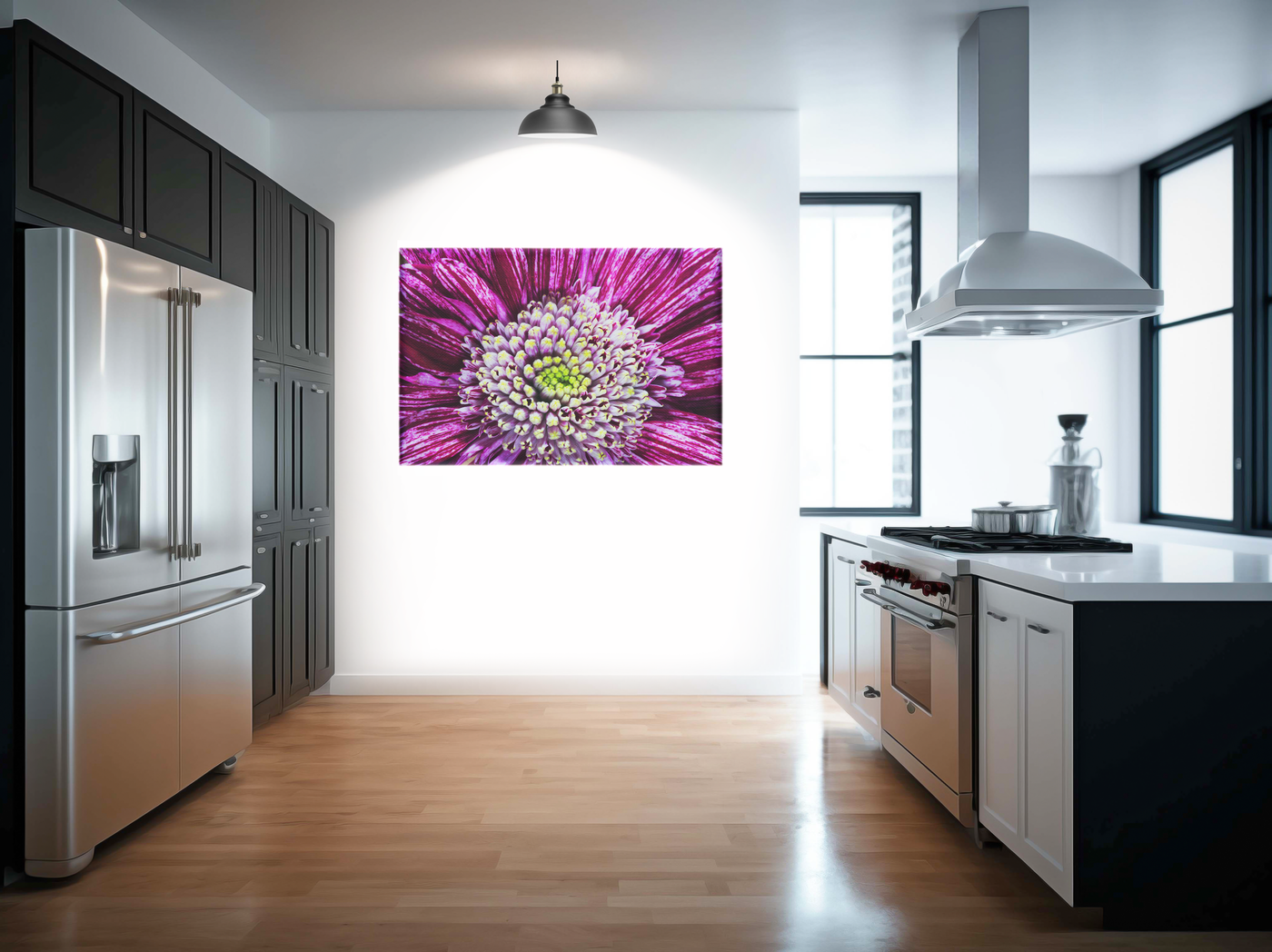 The result is a vibrant and incredibly detailed piece of art which makes the naturally vivid purples and greens of the flower shout for attention, and the stunning detail of the piece highlights the magnificent patterns of the flower that are unique to nature.