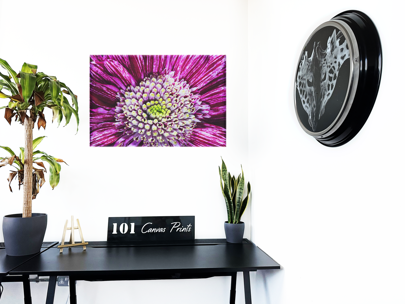 Experience an explosion of colour and texture from the Far Eastern delight that is the Chrysanthemum (Chrysanthemum Indicum), immortalised here by the 101 Canvas Prints photography team for your viewing pleasure.