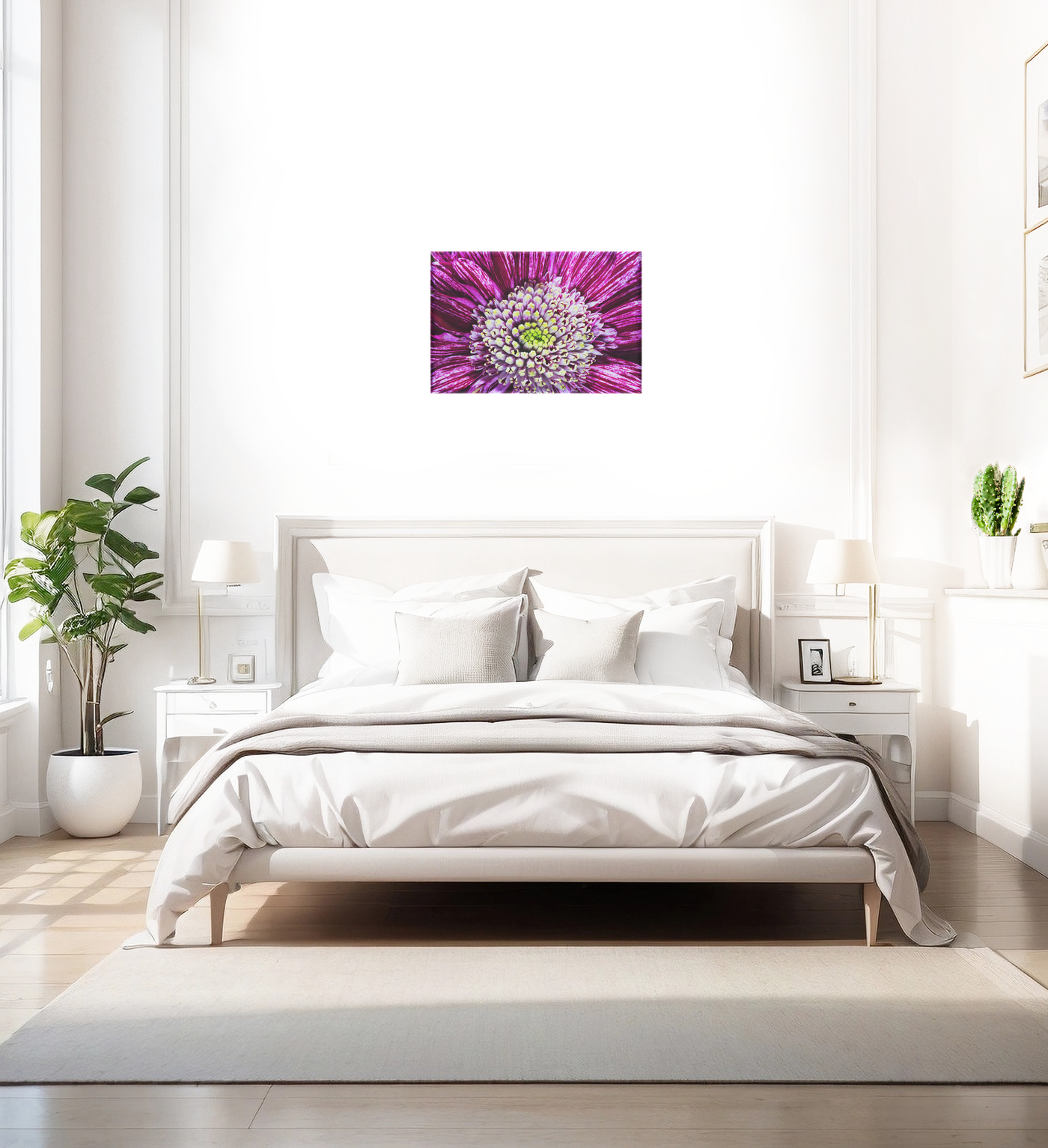 The result is a vibrant and incredibly detailed piece of art which makes the naturally vivid purples and greens of the flower shout for attention, and the stunning detail of the piece highlights the magnificent patterns of the flower that are unique to nature.
