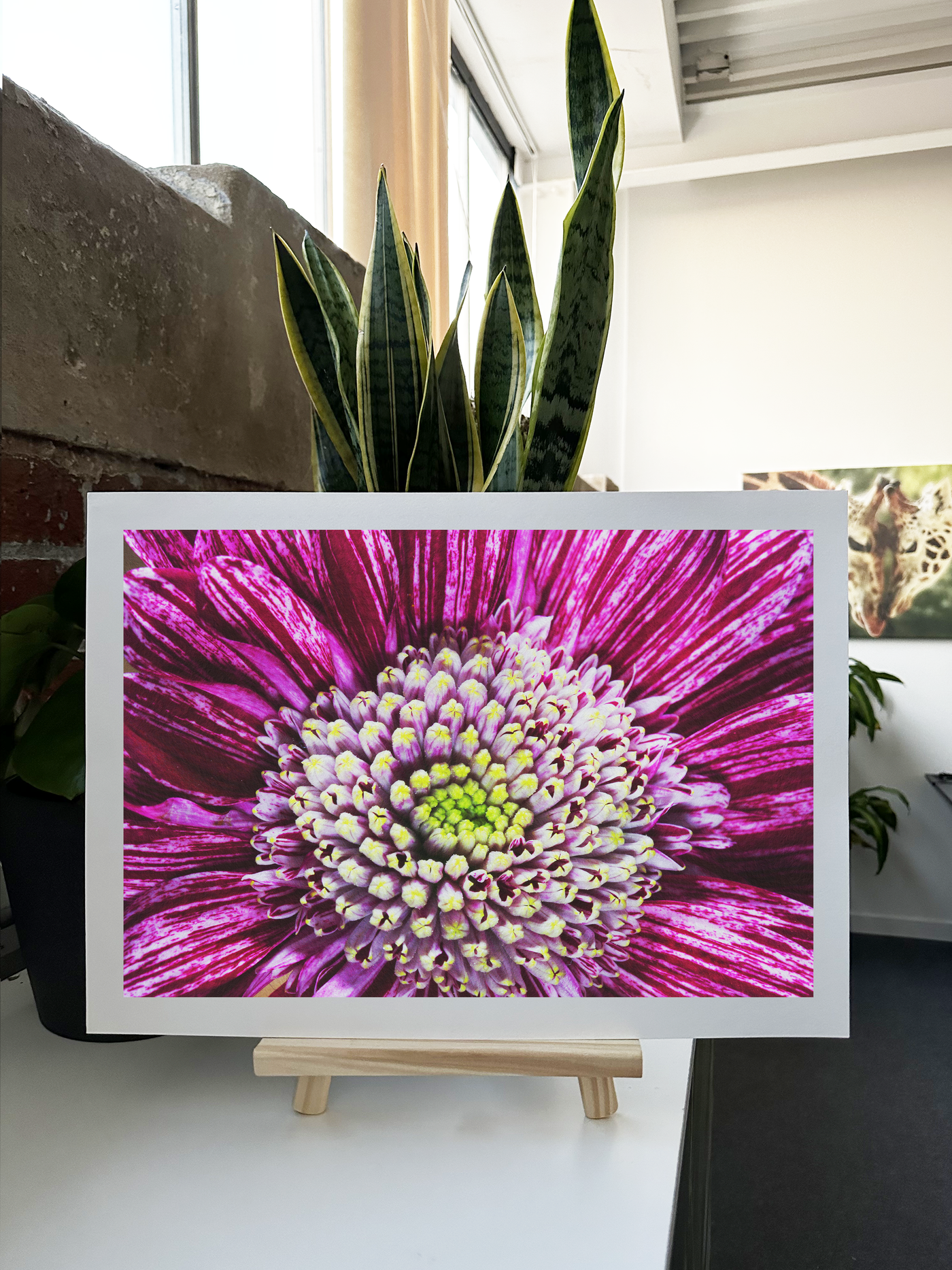 The result is a vibrant and incredibly detailed piece of art which makes the naturally vivid purples and greens of the flower shout for attention, and the stunning detail of the piece highlights the magnificent patterns of the flower that are unique to nature.