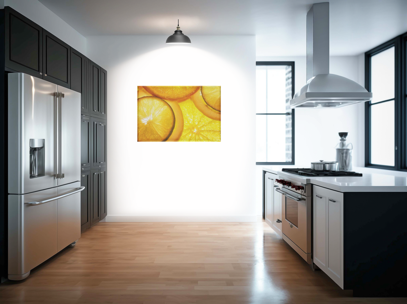 On Canvas, this image takes on a delightful tactile quality. The natural texture of the Canvas complements the organic subject matter, softening the vibrant colours slightly to create a warm, inviting feel. The matte finish enhances the perceived juiciness of the fruit, making the slices appear even more succulent and tempting. This Canvas print would be a perfect addition to a kitchen or dining area, bringing a burst of energy and colour to the space. It could also serve as an uplifting piece in a home office or sunroom, evoking feelings of vitality and refreshment.