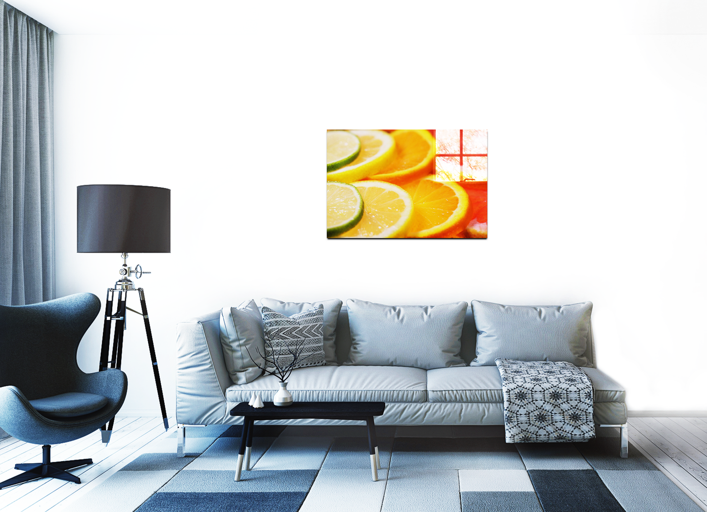 Presented behind crystal-clear Acrylic, this print gains exceptional depth and brilliance. The protective Acrylic layer enhances the already vivid colours and sharp details, creating a sleek, contemporary look that will become a refreshing focal point in your kitchen, dining area, or any space that could use a splash of zesty energy. Durable and easy to clean, this Acrylic print is perfect for busy areas of your home or office.