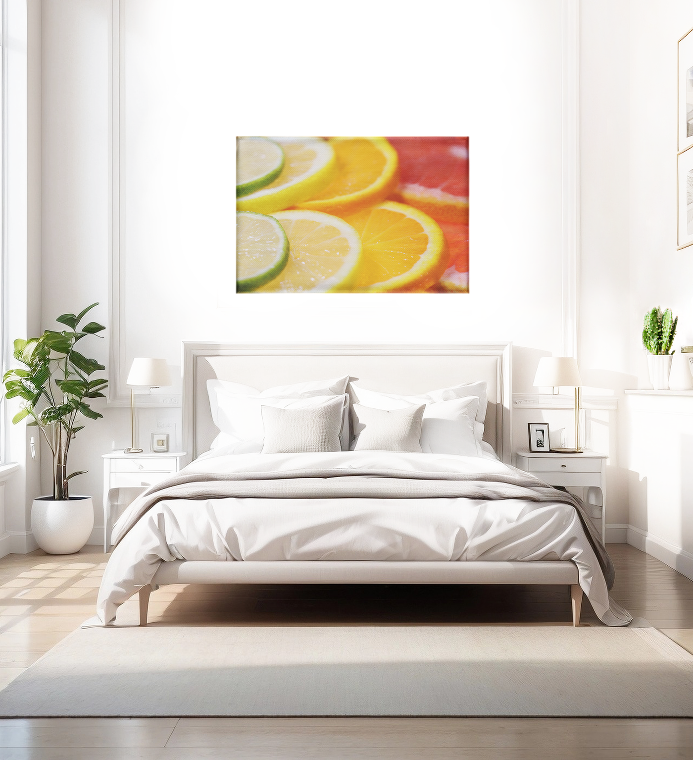 Printed on high-quality Canvas, this image takes on a natural, tactile quality that complements its subject matter. The texture subtly enhances the fruits' juicy appearance, while the matte finish brings out the richness of the citrus hues. Stretched over a sturdy wooden frame, this Canvas print arrives ready to hang, instantly adding a fresh, invigorating touch to your kitchen, dining room, or any space that could use a burst of colour and energy.