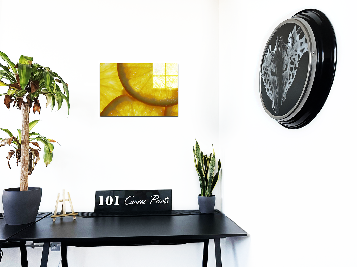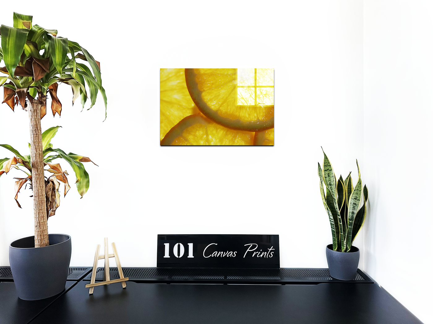 When produced as an acrylic-set print, this image truly comes to life. The high-gloss finish of the Acrylic enhances the natural sheen of the orange slices, making them appear so fresh and juicy that one can almost taste their tart flavour. This Acrylic print would make a bold statement in a modern kitchen or bar area, its glossy surface complementing sleek, contemporary designs. It could also serve as an energising focal point in a bright, airy living space or a creative studio, inspiring freshness and creativity with its zesty allure.