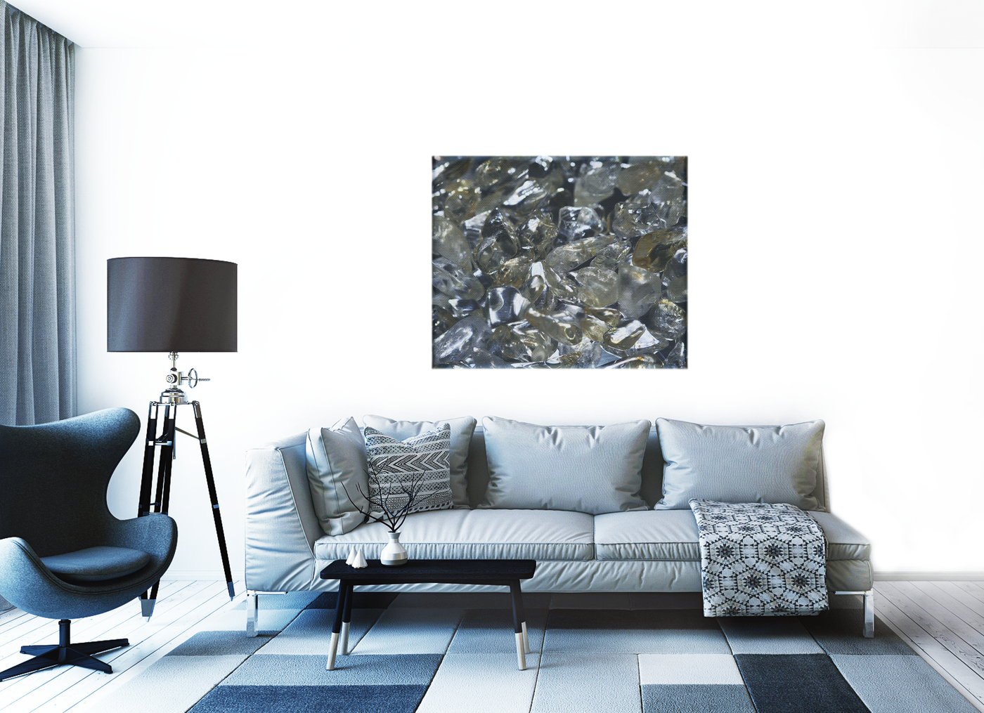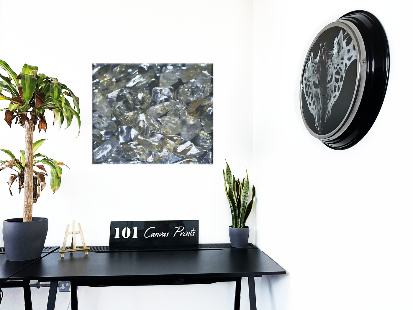 Bring a touch of avant-garde artistry to your walls with this captivating Canvas print. The skilled photographers at 101 Canvas Prints have transformed a collection of glass fragments into a mesmerising study of light and form, creating a truly unique piece of wall art.