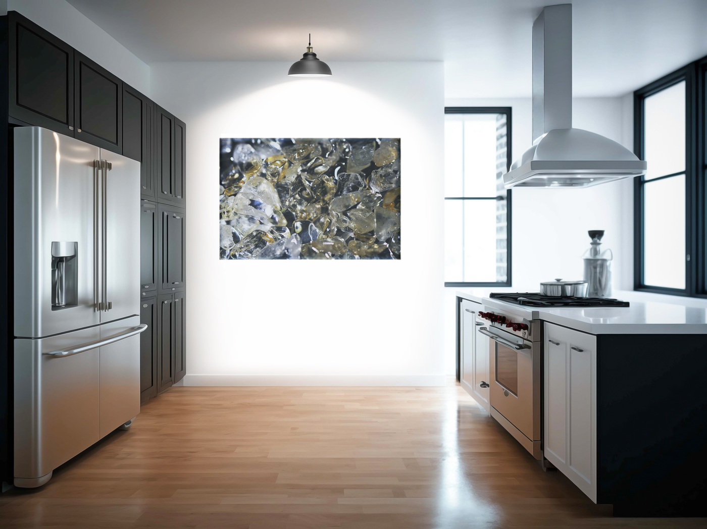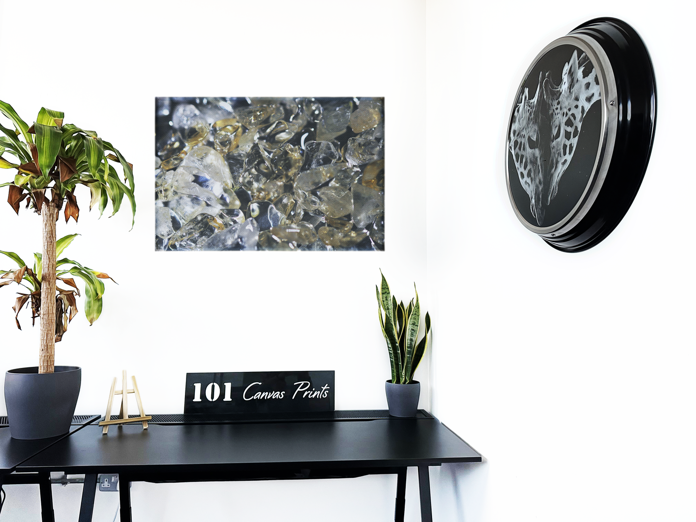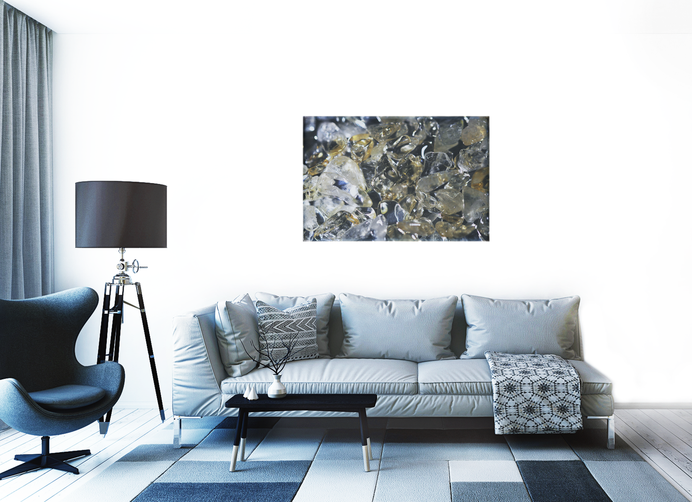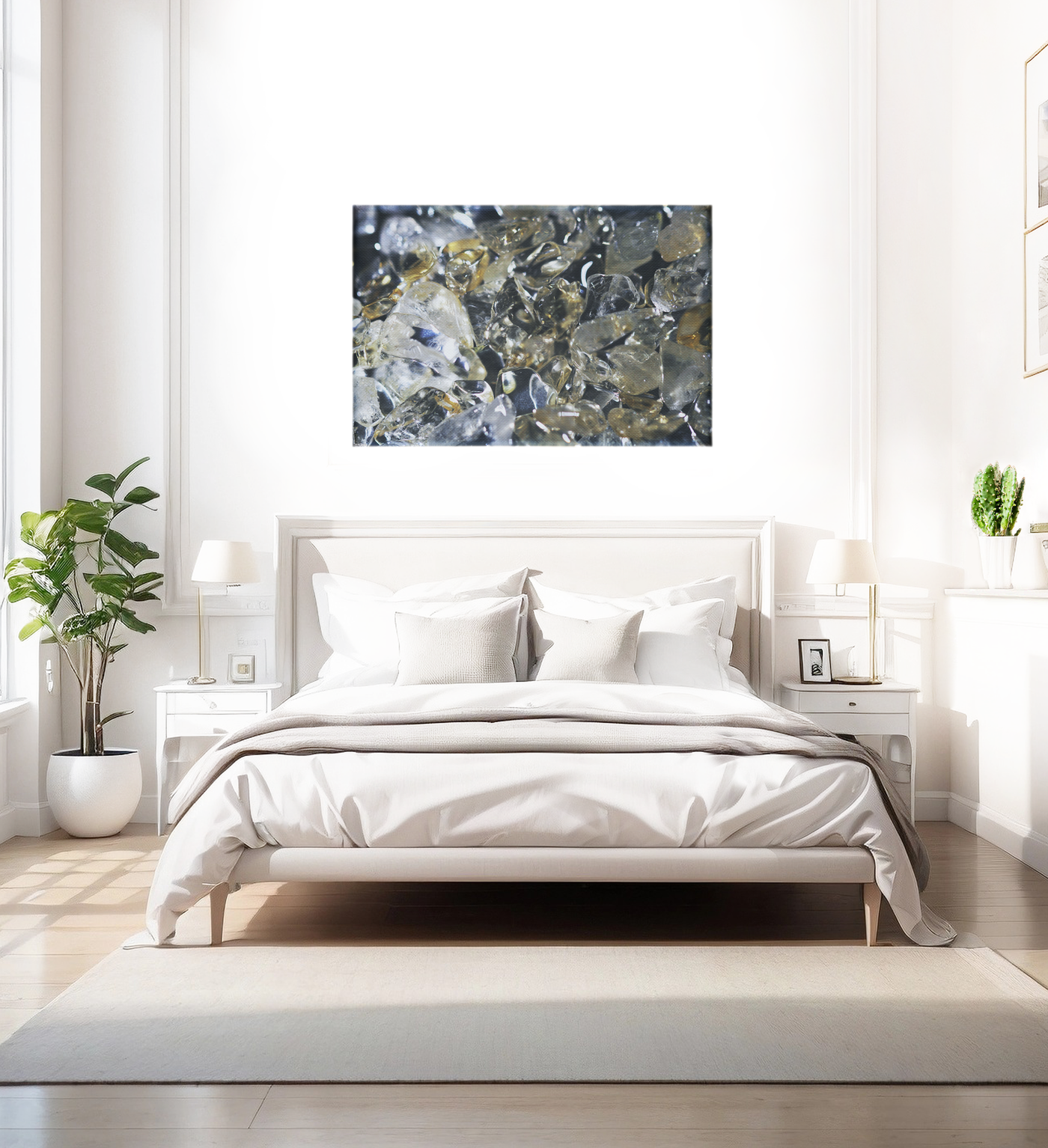The Canvas material lends a subtle texture that complements the crystalline subject, softening the overall effect while maintaining the image's captivating brilliance. This versatile artwork would be equally at home in a serene bedroom, a sophisticated study, or as a statement piece in a minimalist living area.