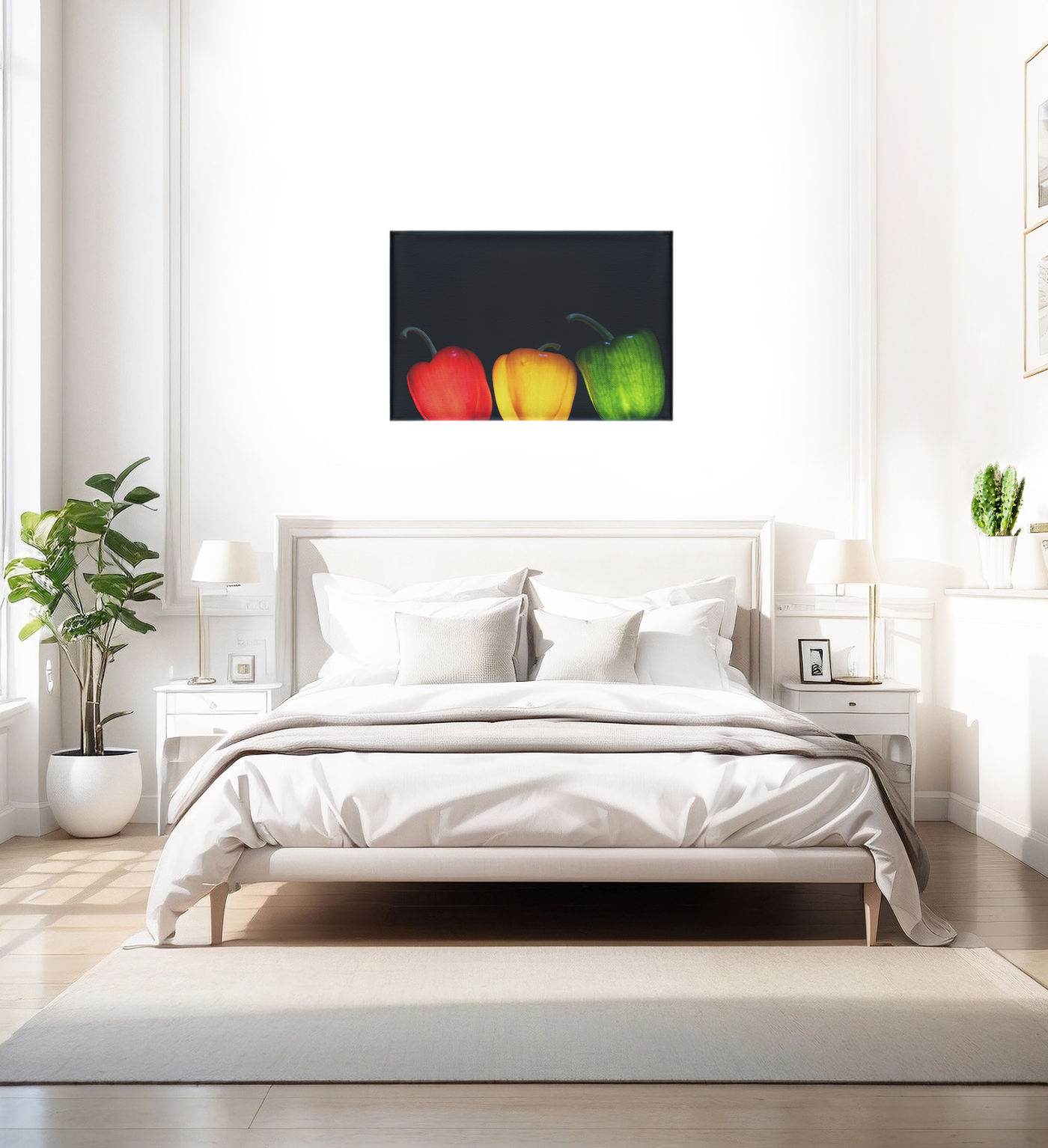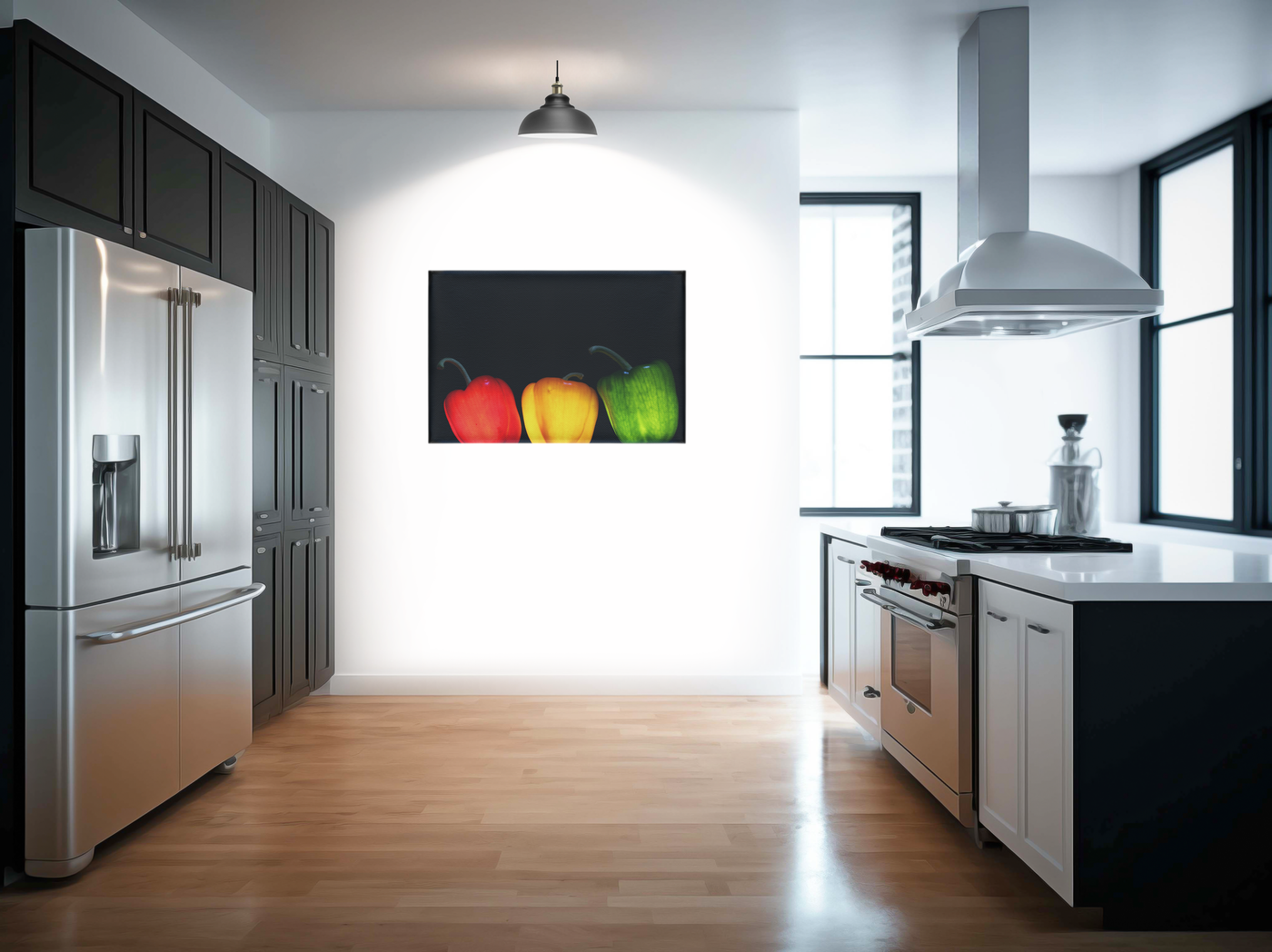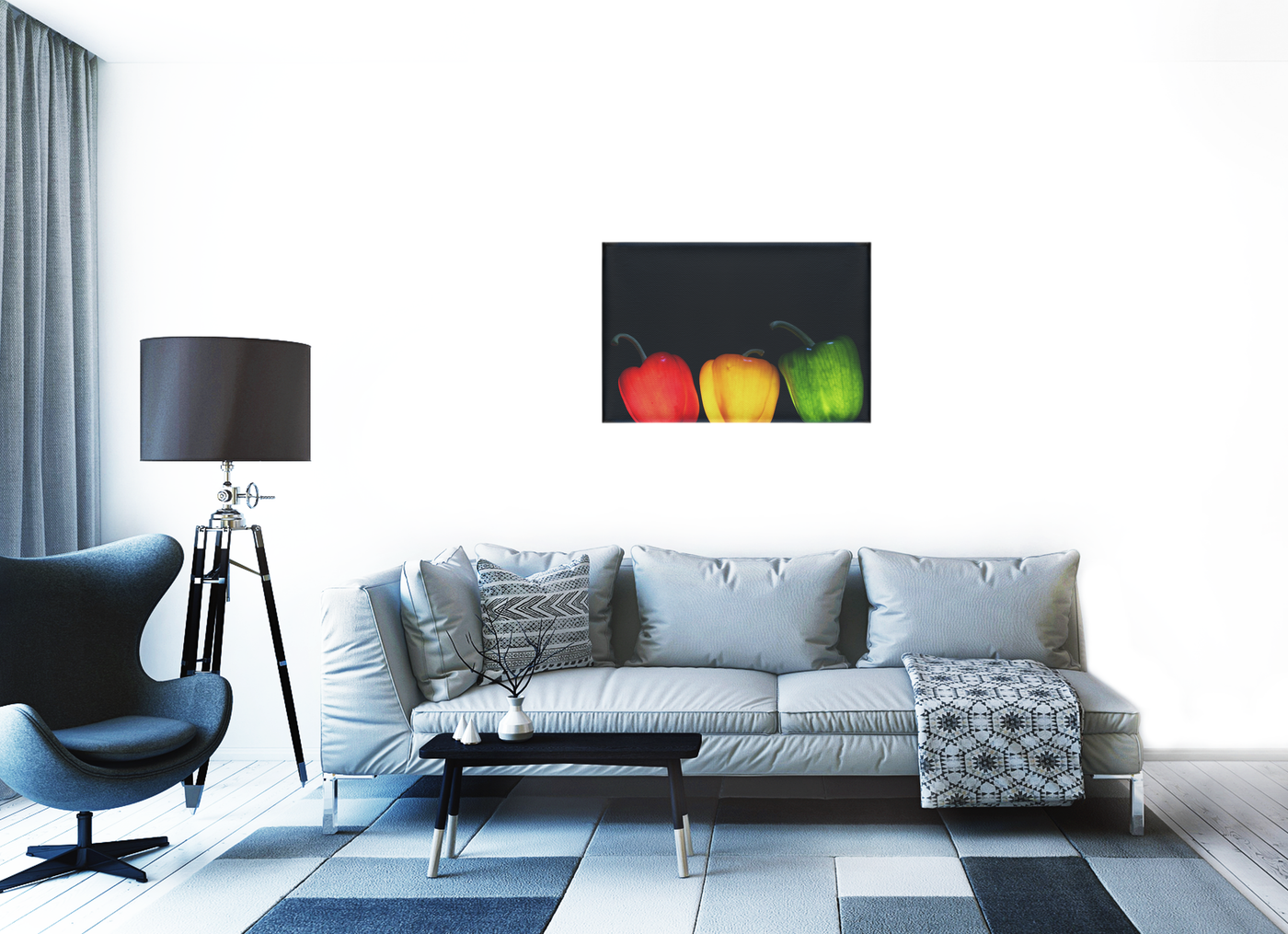 This versatile Canvas print would be equally at home in a modern kitchen, a cosy dining room, or a stylish office space. The classic still life composition with a contemporary twist makes it a perfect bridge between traditional and modern décor styles. Let this trio of peppers add a pop of colour and a touch of culinary charm to your living space.