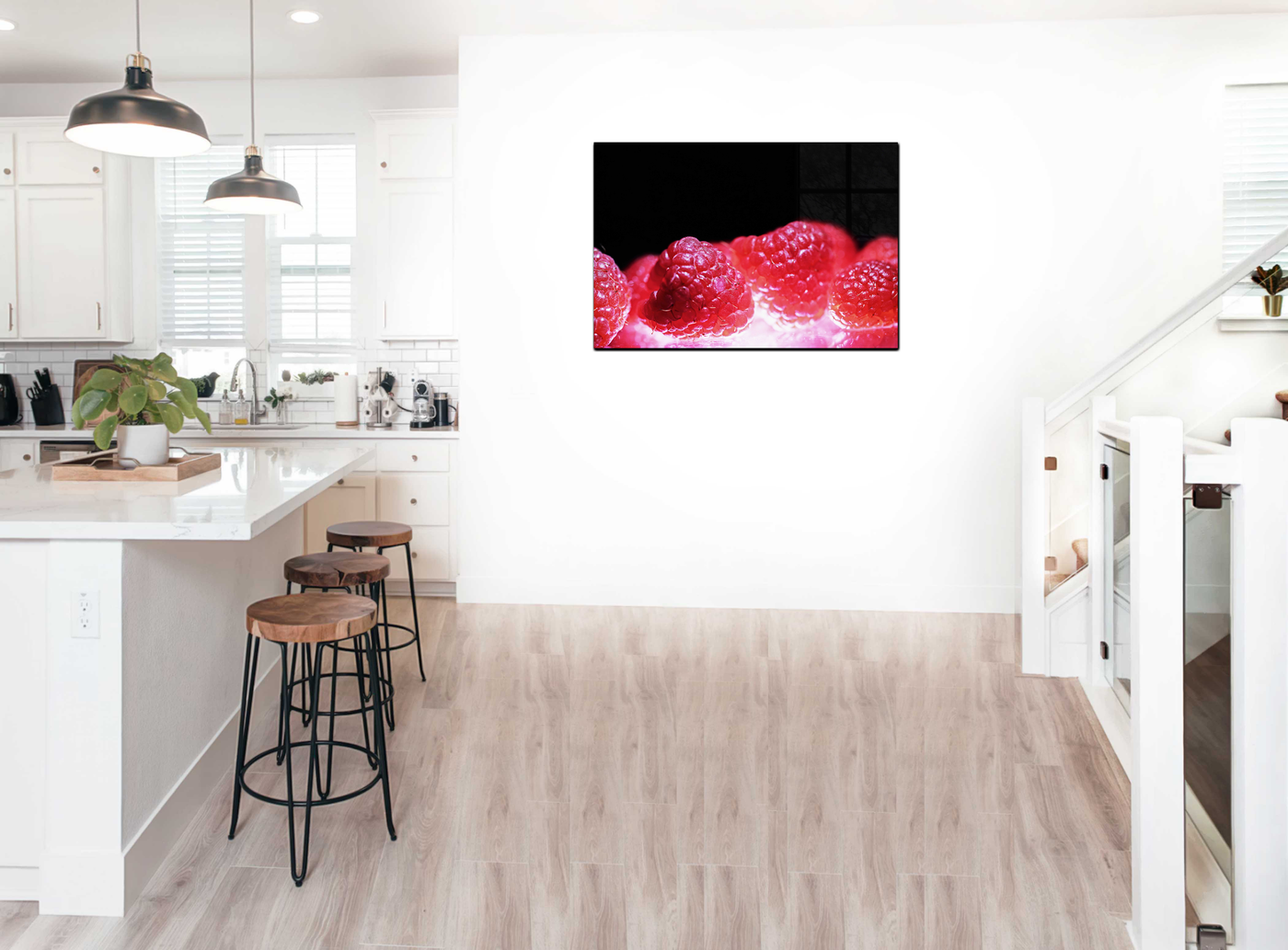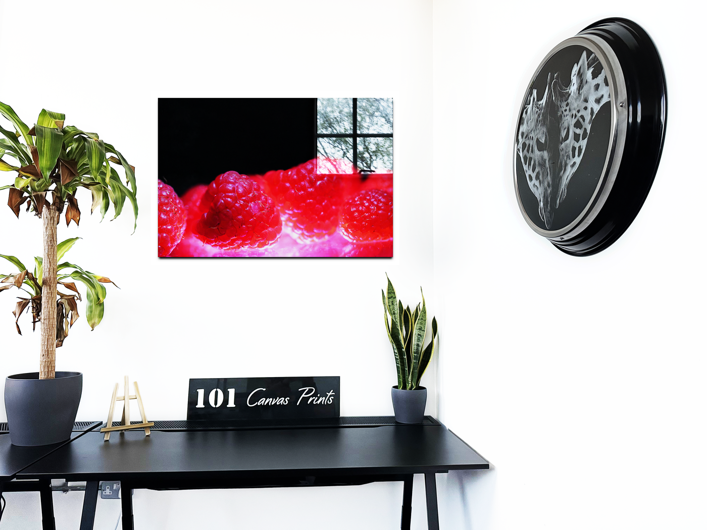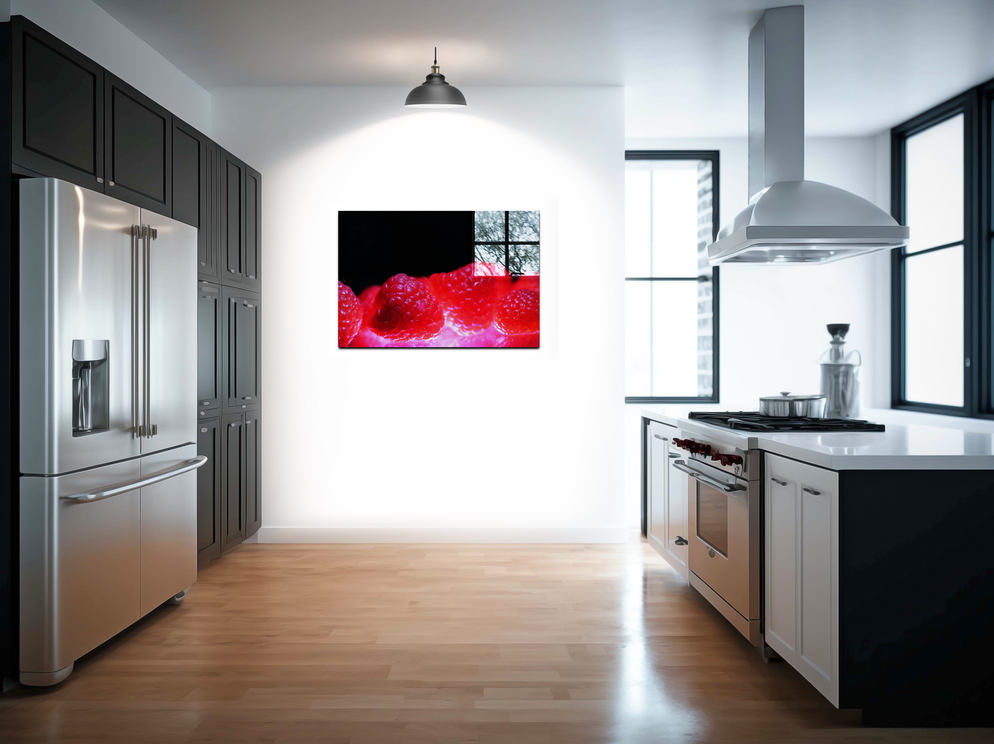 When presented in our premium Acrylic medium, this fruit study achieves an extraordinary level of visual impact. The high-gloss finish dramatically enhances the natural sheen of the berries, while the crystal-clear surface creates an almost jewel-like quality that makes the fruit appear to float in space. This stunning piece would be particularly effective in contemporary dining spaces or modern kitchens, where its vibrant presence can create maximum impact while celebrating the beauty of fresh, natural produce.