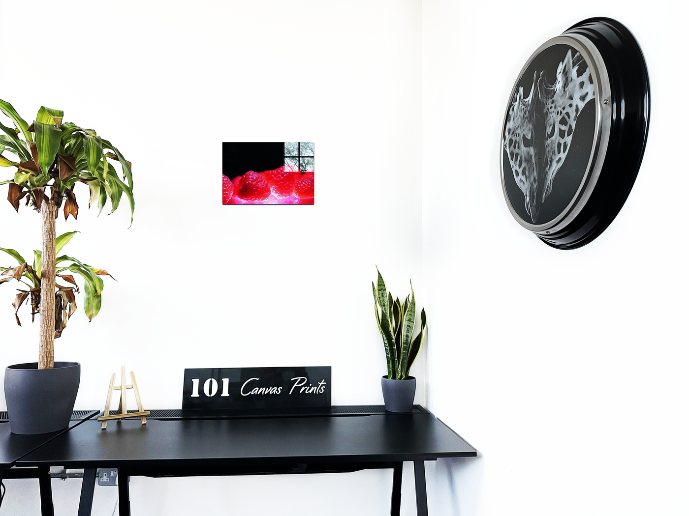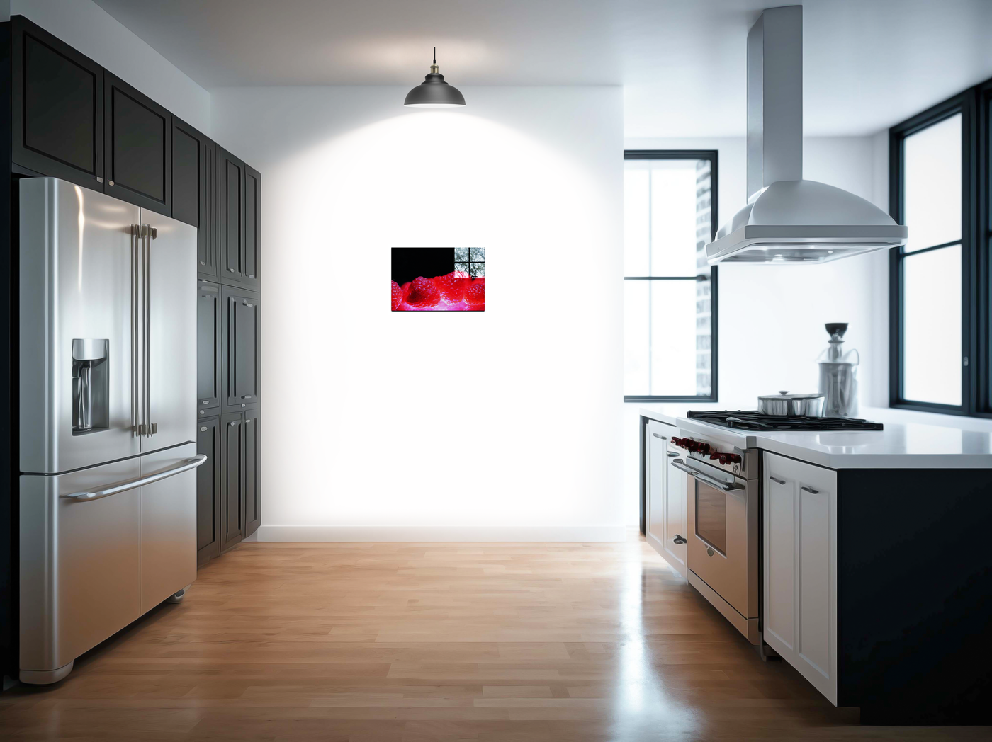 When presented in our premium Acrylic medium, this fruit study achieves an extraordinary level of visual impact. The high-gloss finish dramatically enhances the natural sheen of the berries, while the crystal-clear surface creates an almost jewel-like quality that makes the fruit appear to float in space. This stunning piece would be particularly effective in contemporary dining spaces or modern kitchens, where its vibrant presence can create maximum impact while celebrating the beauty of fresh, natural produce.