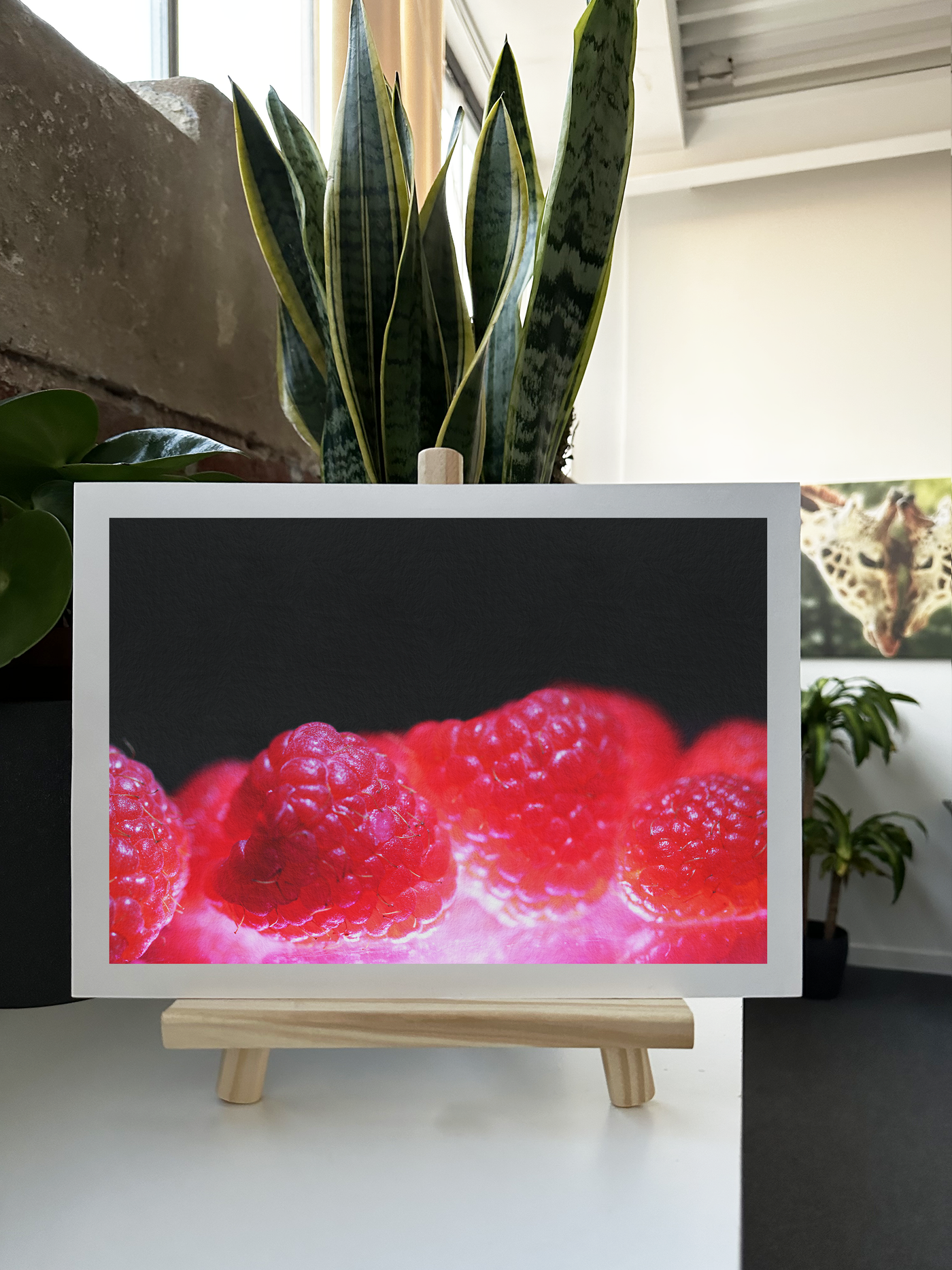 The colour palette is a celebration of red in all its glory, from bright crimson highlights to deep burgundy shadows, with hints of pink undertones adding warmth and dimension. Our print enhancement team have carefully preserved every detail of the berries' complex surface texture, from the individual drupelets to the way light plays across their glossy surface. The contrast between the vibrant fruit and the deep black background creates a dramatic effect that emphasises the berries' natural beauty.