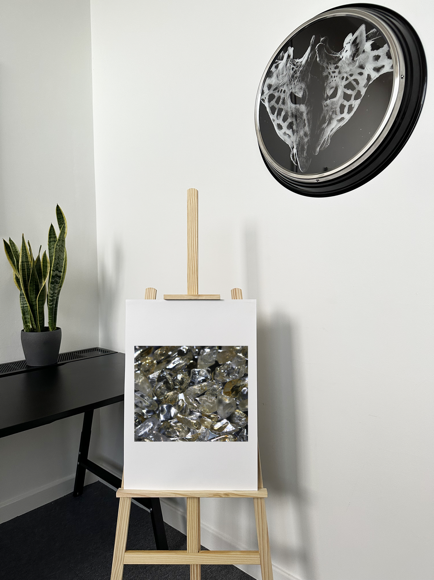 Bring a touch of avant-garde artistry to your walls with this captivating Fine Art print. The skilled photographers at 101 Canvas Prints have transformed a collection of glass fragments into a mesmerising study of light and form, creating a truly unique piece of wall art.