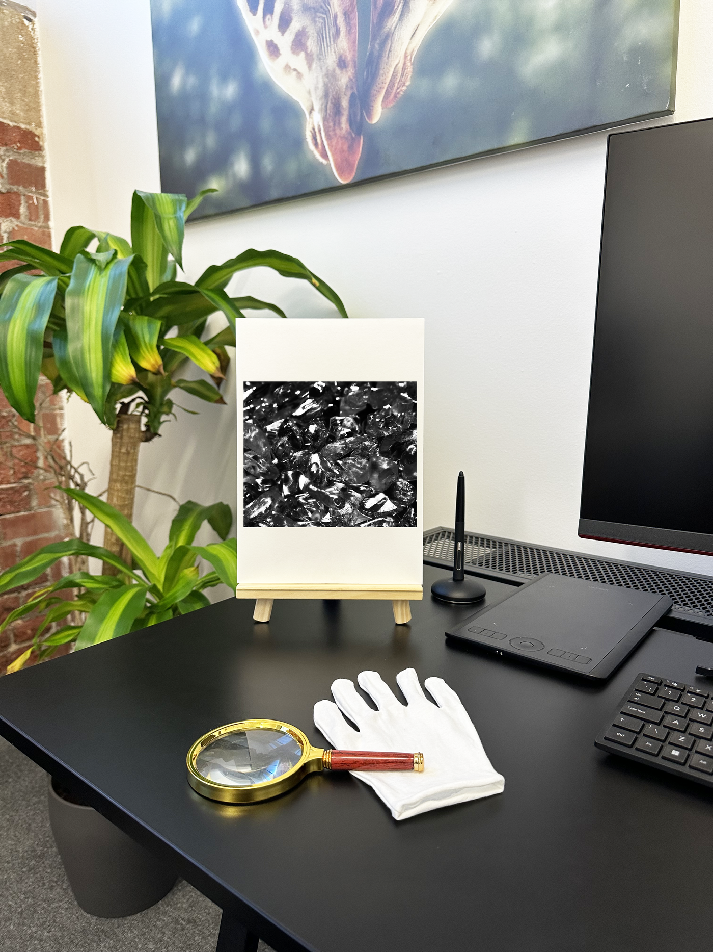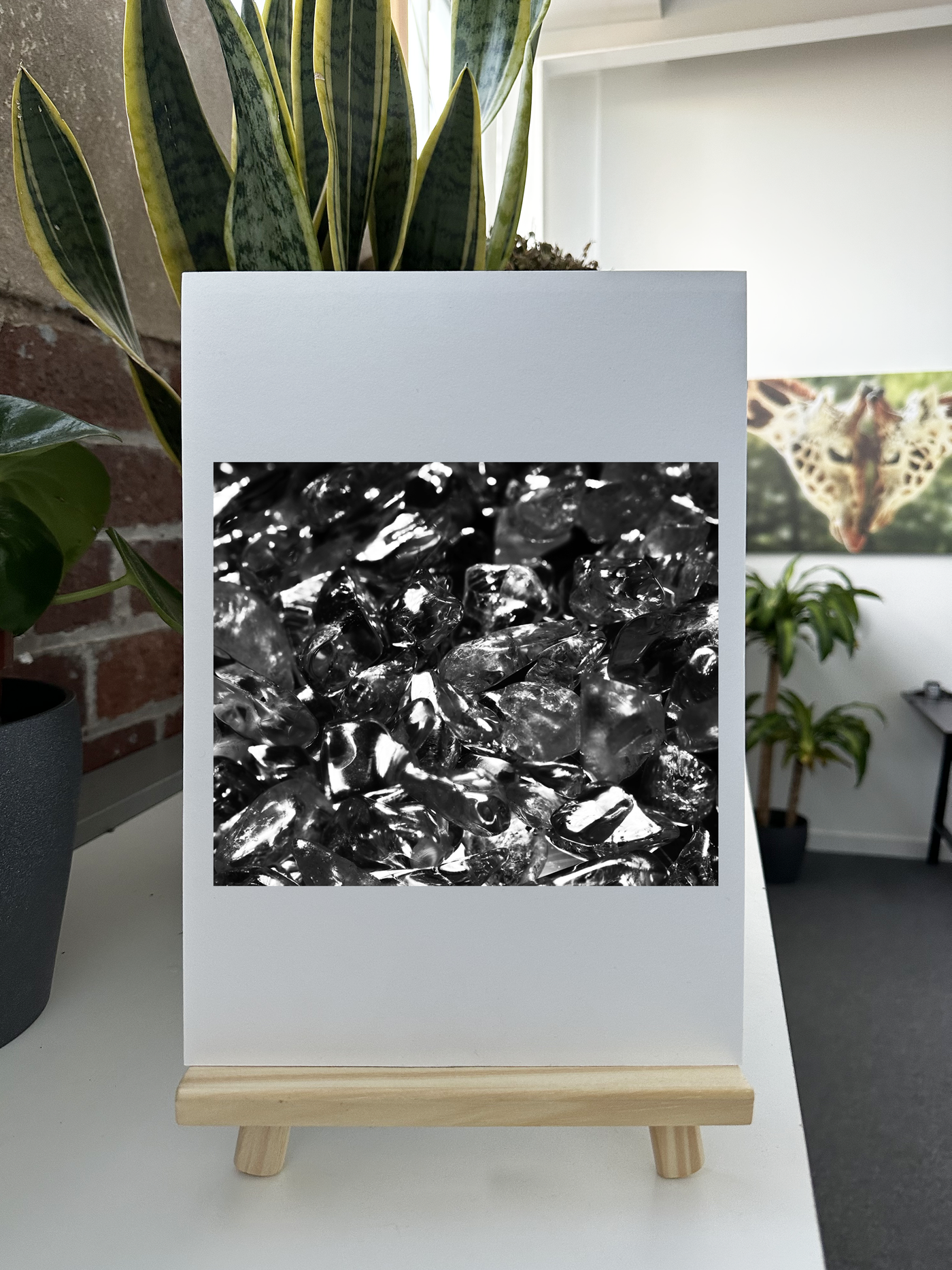 Bring a touch of avant-garde artistry to your walls with this captivating Monochrome Fine Art print. The skilled photographers at 101 Canvas Prints have transformed a collection of glass fragments into a mesmerising study of light and form, creating a truly unique piece of wall art.