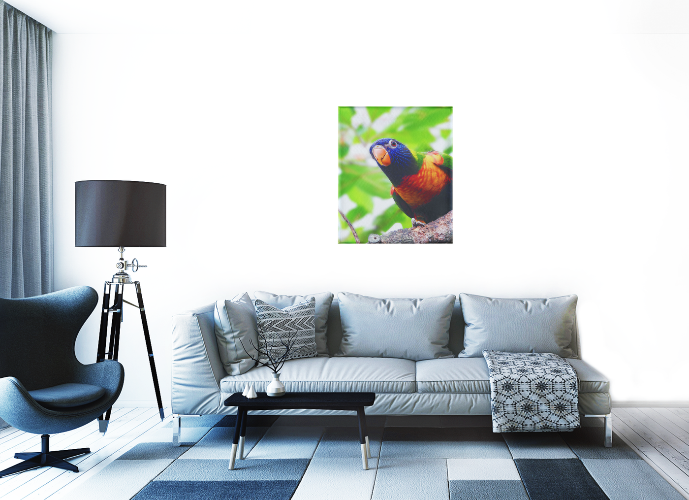 This Curious lorikeet Canvas print is a gorgeous piece of artwork that captures an inquisitive and free-spirited lorikeet in spectacular detail. When displayed in your home, it will be the perfect addition to any room.