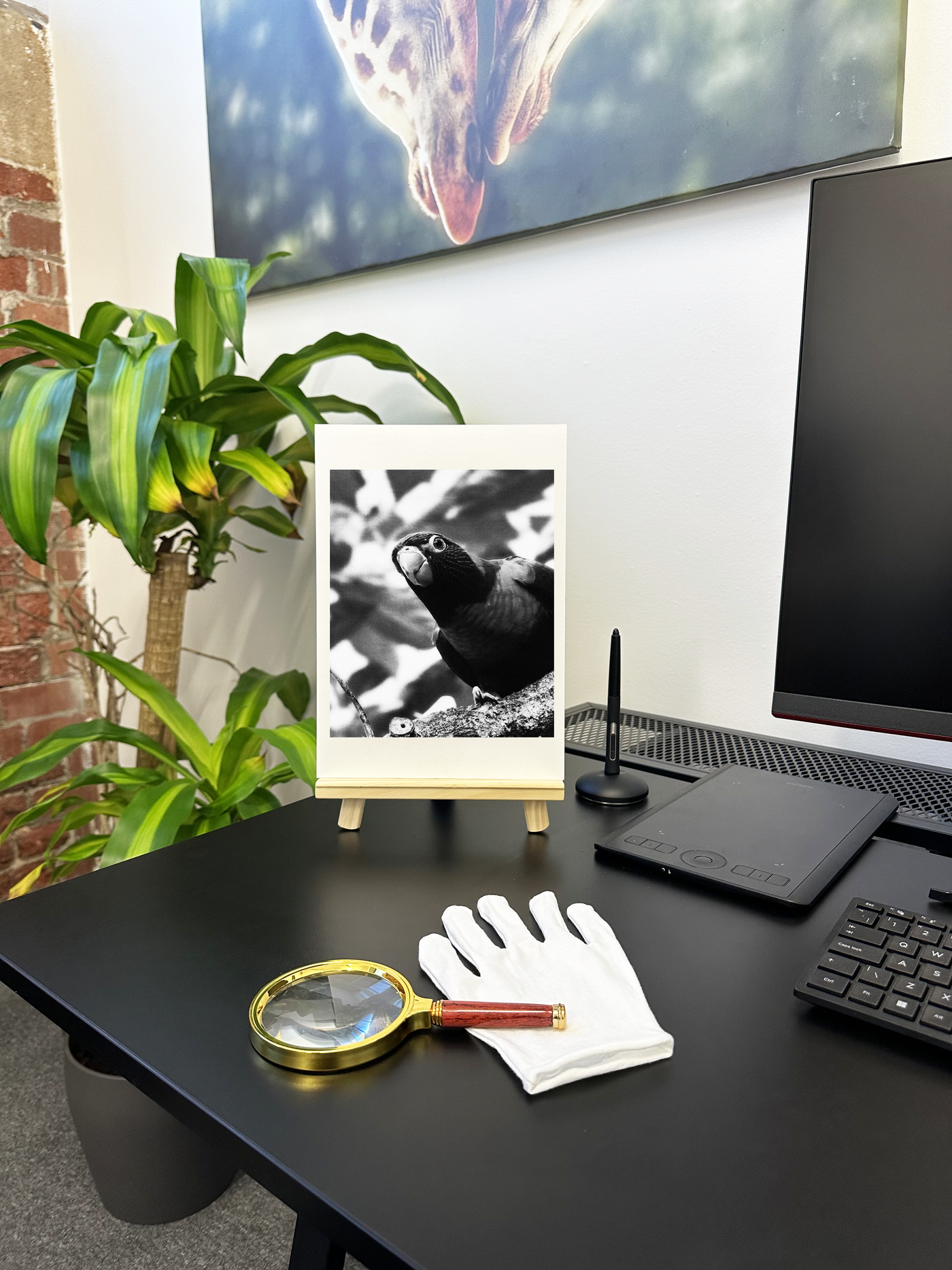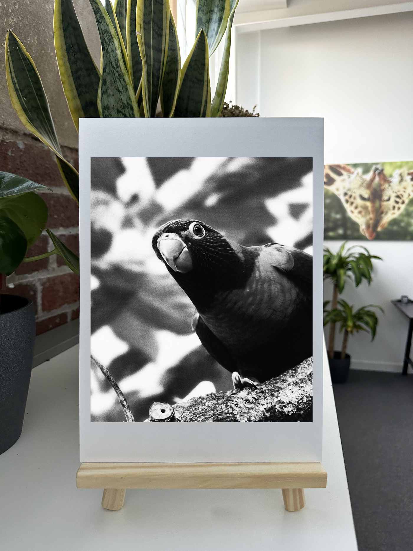 This Curious lorikeet Monochrome Fine Art print is a gorgeous piece of artwork that captures an inquisitive and free-spirited lorikeet in spectacular detail. When displayed in your home, it will be the perfect addition to any room.