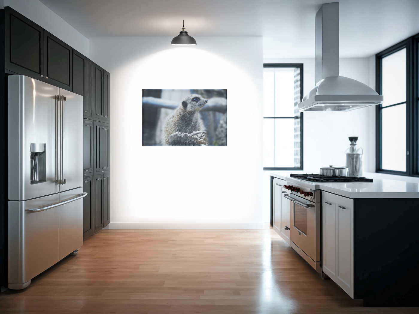 Let the animal watchers in your home décor be charmed by Meerkat Portrait by the 101 Canvas Prints photography team. This Canvas print is perfect for any style ranging from traditional to mid century modern. The cool greys and darker shades add a touch of sophistication, making this piece a wonderful focal point for your home.
