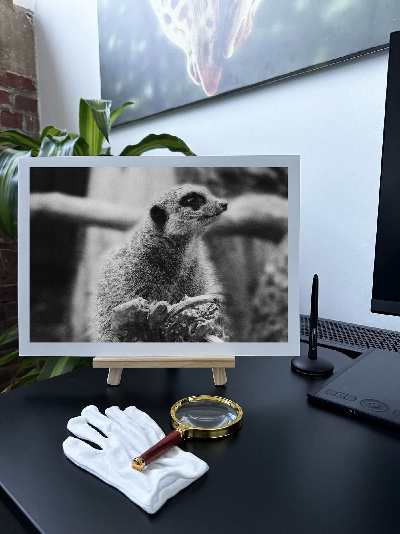 Curious Meerkat - Monochrome Fine Art Print - Wildlife Category