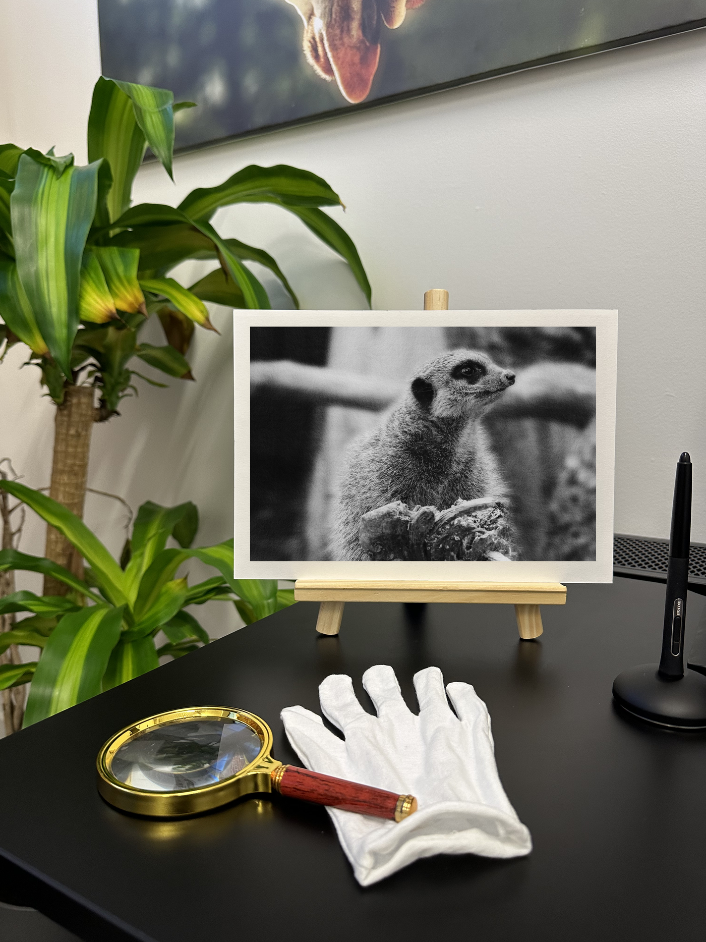 Curious Meerkat - Monochrome Fine Art Print - Wildlife Category
