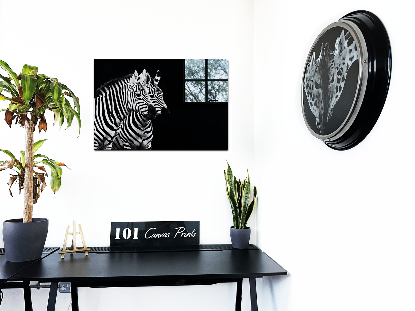 The initial composition has been edited in-house by a 101 Canvas Prints photographer to create a stunning monochrome piece, that brings the full attention that these beautiful animals deserve.