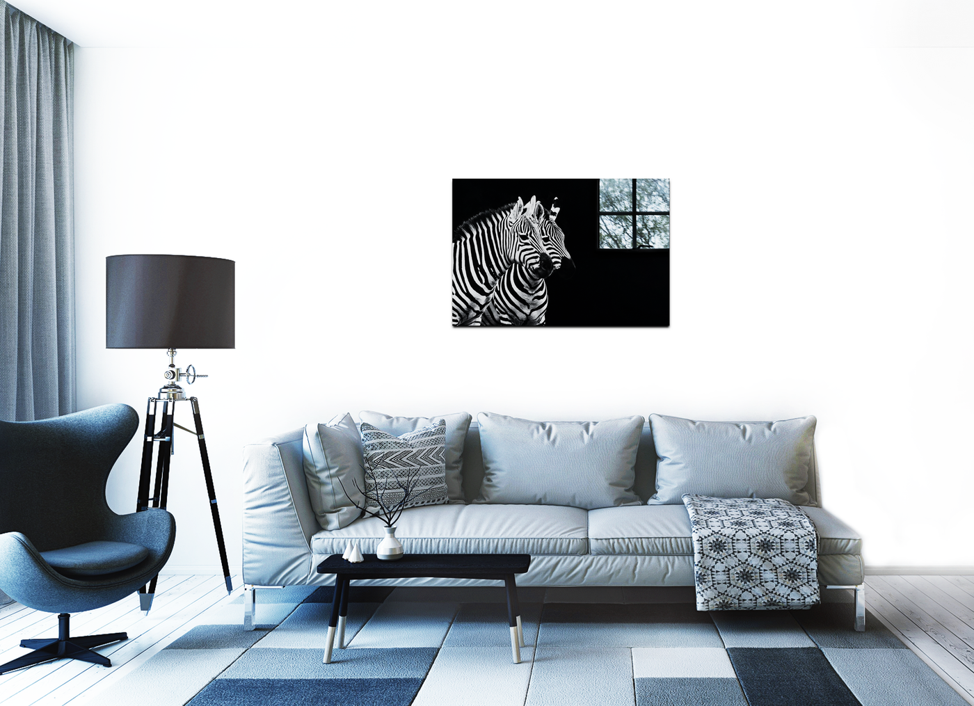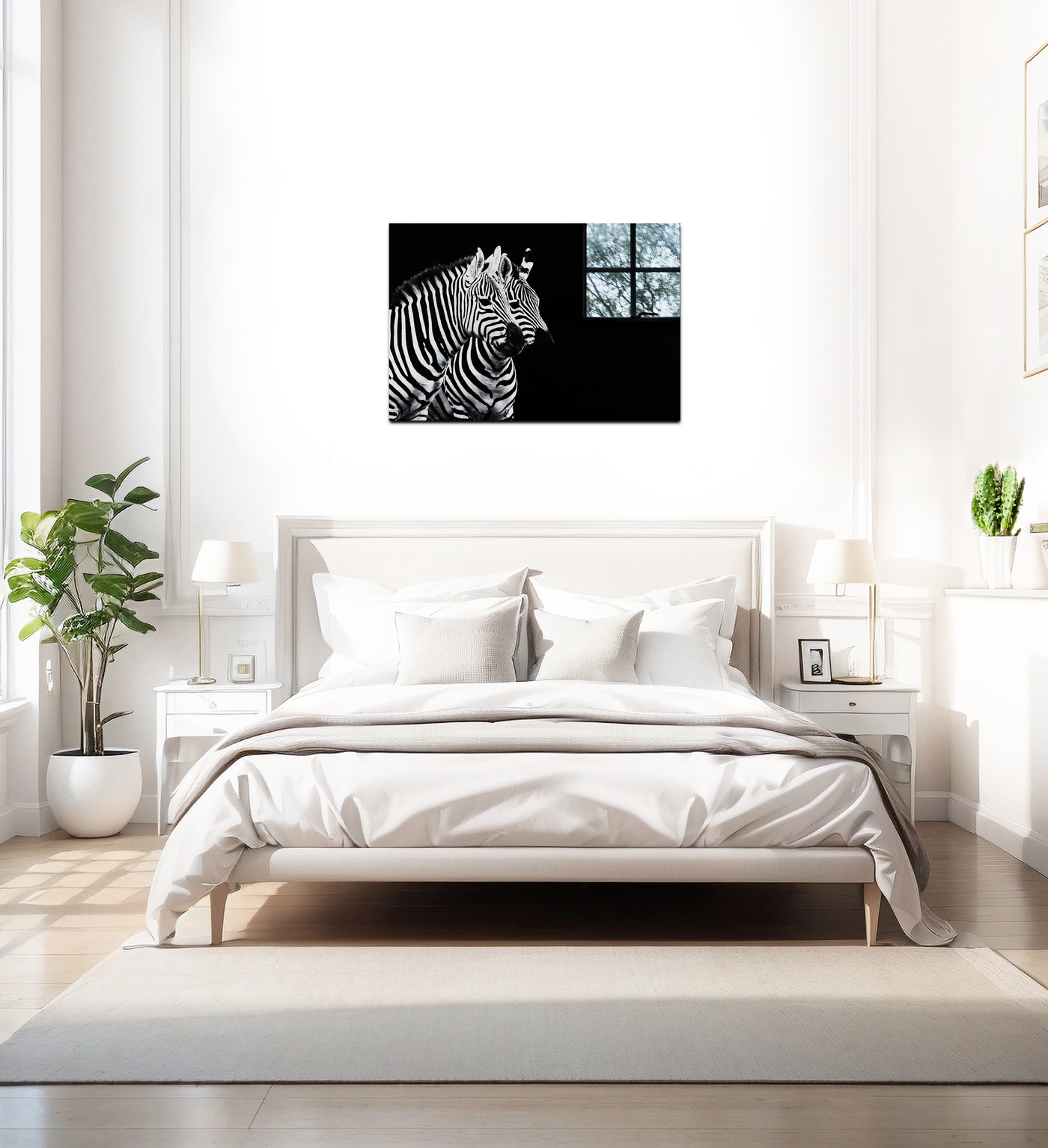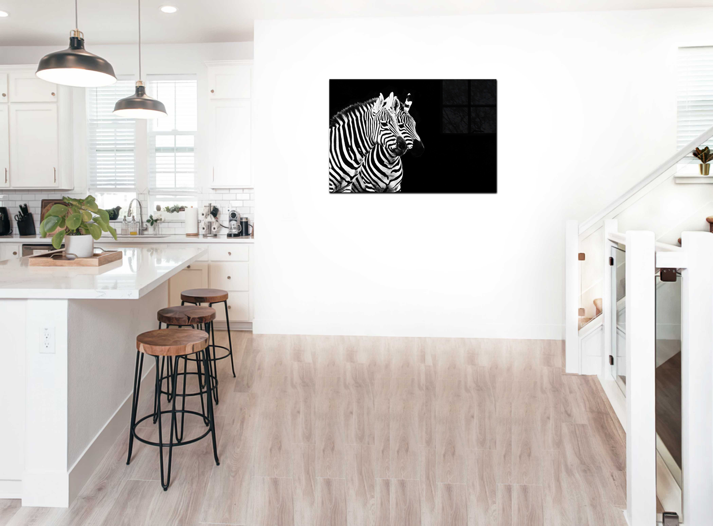 This Acrylic print, entitled Curious Zebras, beautifully captures the inquisitive nature of these elegant animals as they strike a bold pose in their natural habitat.