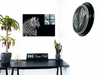 With its bold lines and dramatic use of negative space, we feel that this Acrylic print would create an excellent centrepiece in any room and is best suited to be placed over a white, black or grey backdrop to truly exaggerate and enhance the monochromatic feel.
