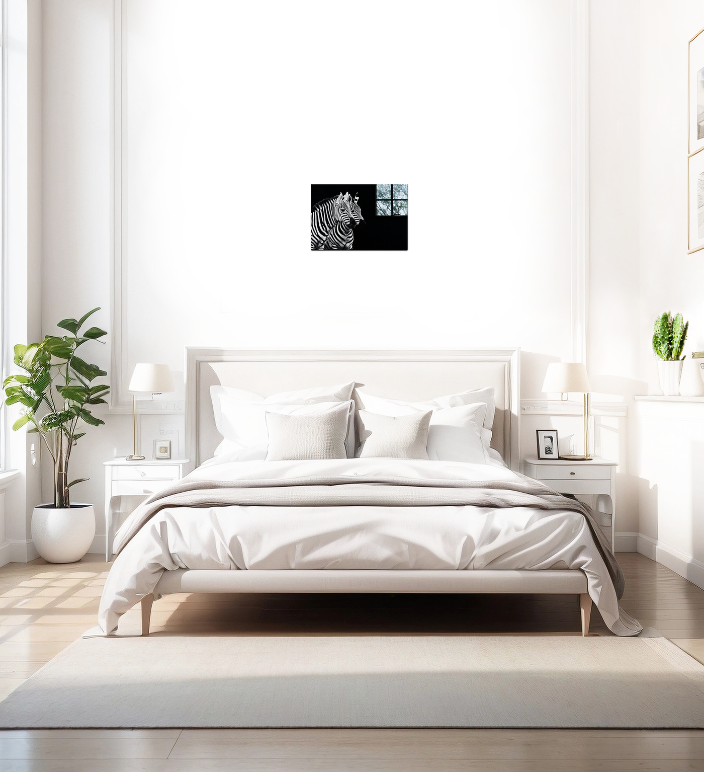 This Acrylic print, entitled Curious Zebras, beautifully captures the inquisitive nature of these elegant animals as they strike a bold pose in their natural habitat.