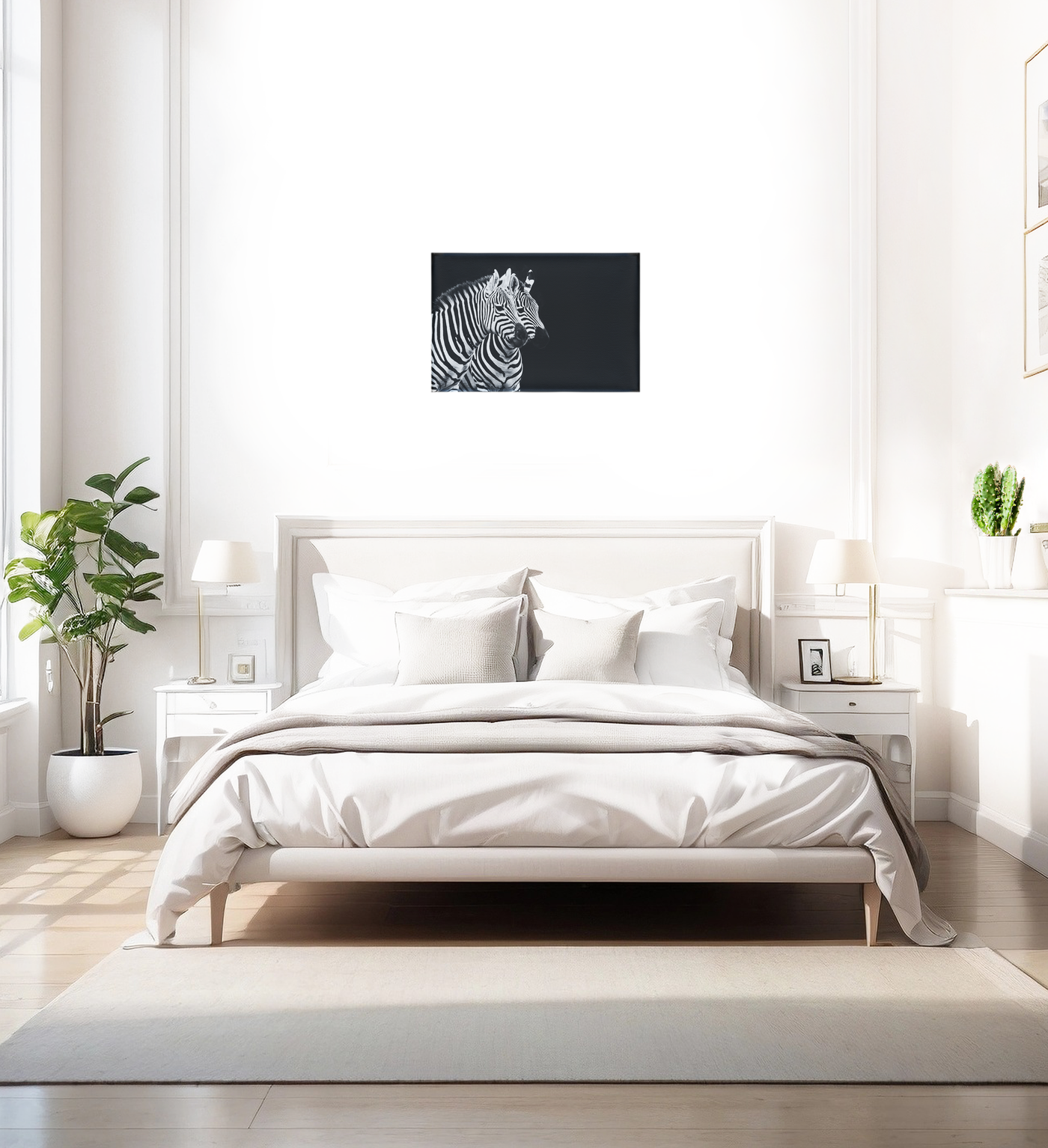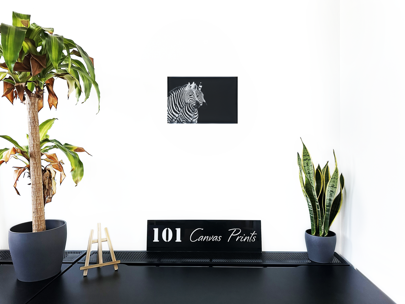 The initial composition has been edited in-house by a 101 Canvas Prints photographer to create a stunning monochrome piece, that brings the full attention that these beautiful animals deserve.