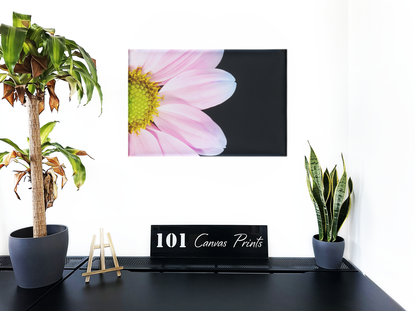 The Canvas medium enhances this image beautifully, its natural texture complementing the organic subject matter. The matte finish of the Canvas softens the contrast between the flower and the background, creating a sense of depth and dimensionality that draws the viewer in. Our team at 101 Canvas Prints has worked diligently to ensure every nuance of colour and texture is faithfully reproduced, resulting in a piece that would add a touch of serene elegance to any space. This print would be particularly striking in a bedroom, study, or any area where its quiet beauty can be appreciated up close.