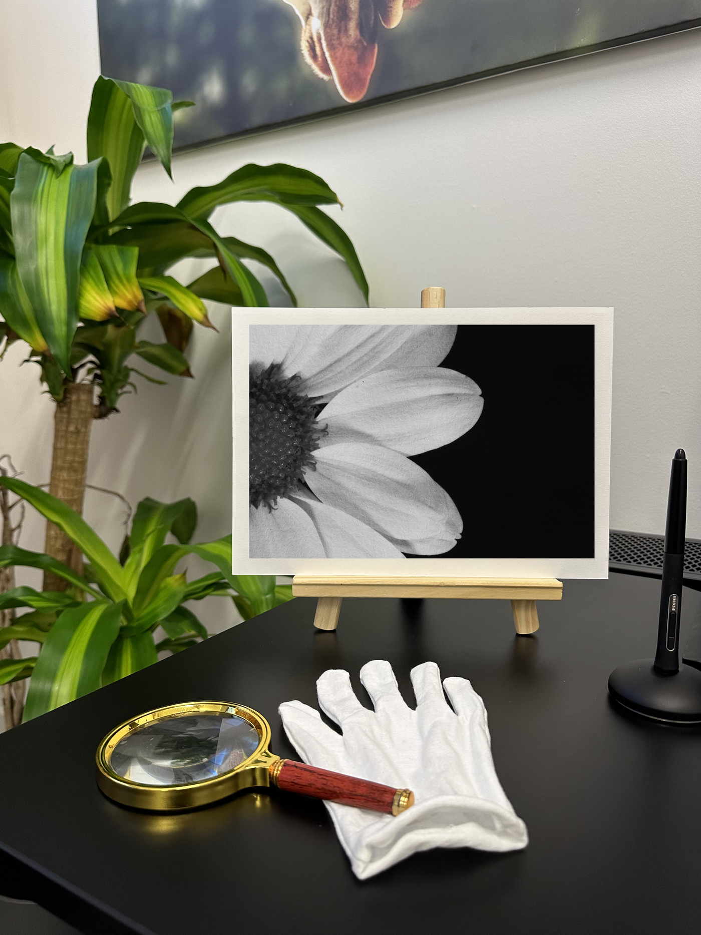 Our carefully handmade monochrome fine art prints are produced on Hahnemühle 308 matte cotton rag paper using Epson archival inks for exceptional detail and color accuracy. Each print features clean, precise edges and a textured surface that brings depth and richness to your chosen artwork, creating a gallery-worthy presentation.