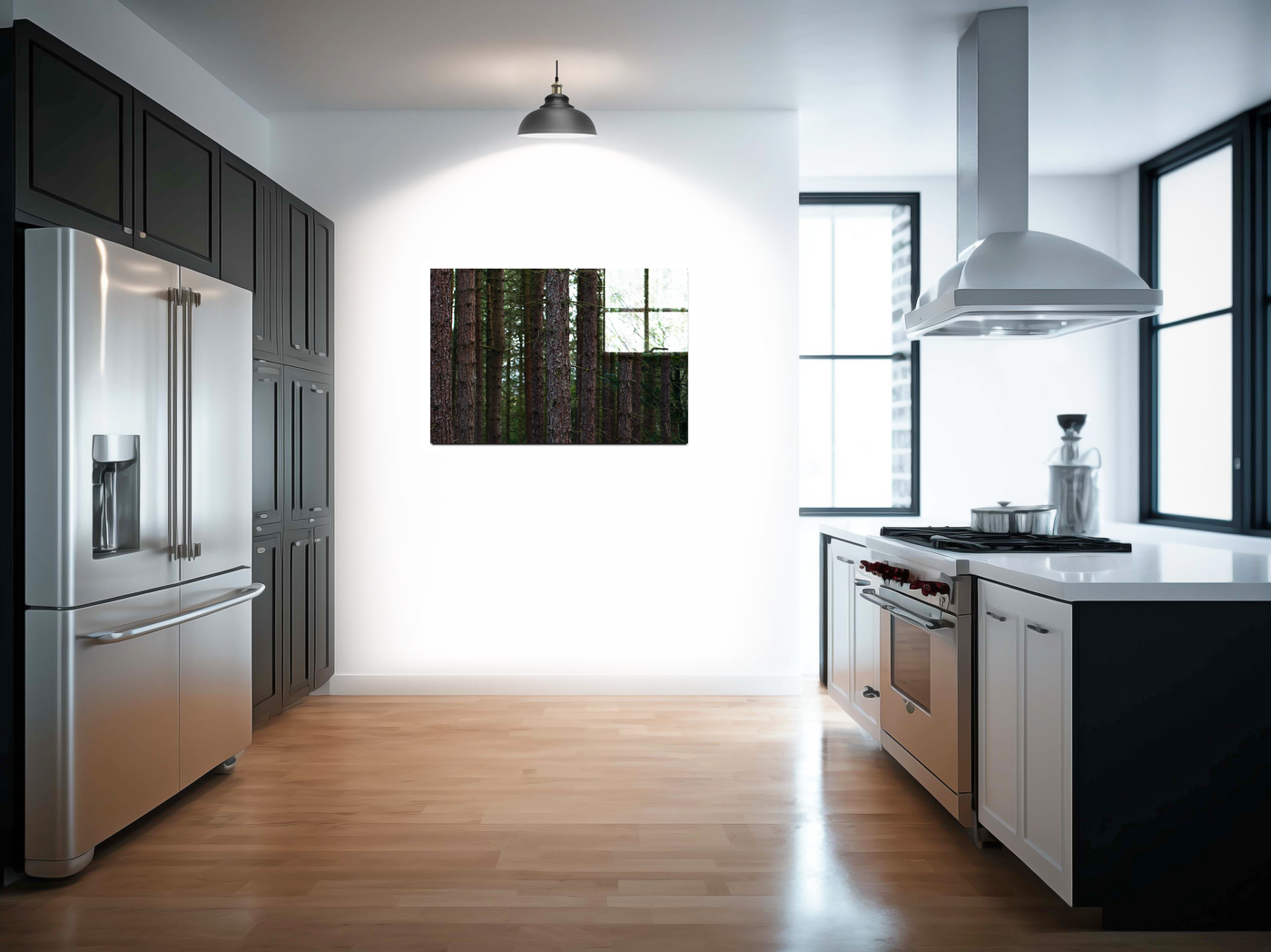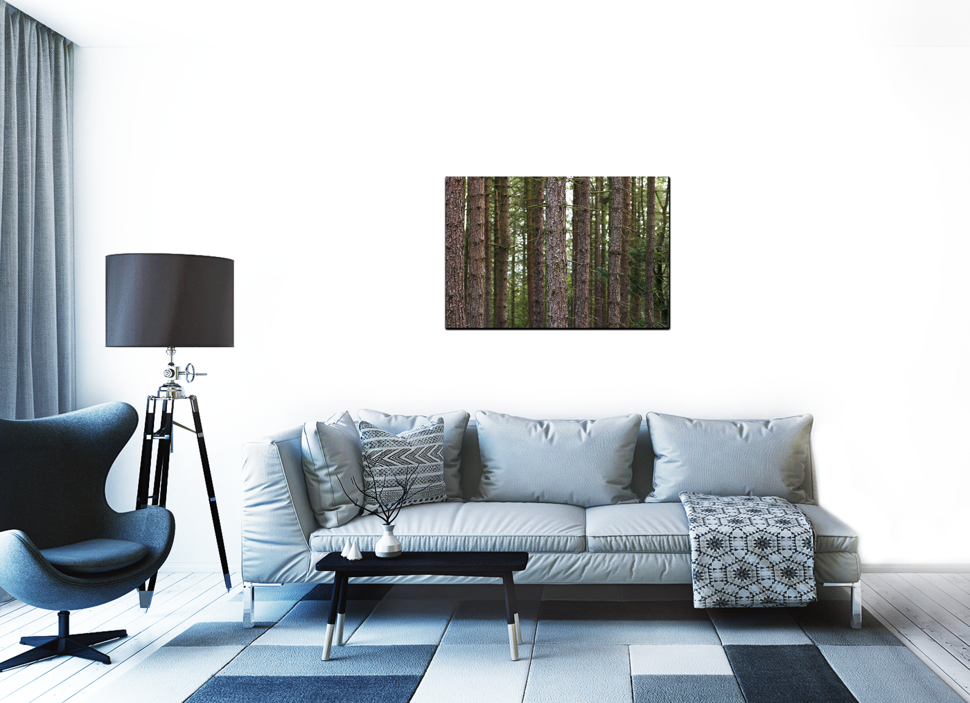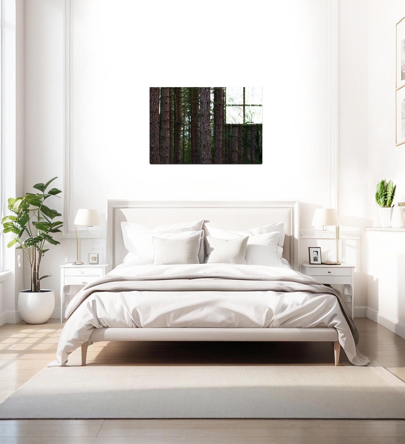 When produced as an acrylic-set print, this forest scene truly comes to life. The glossy finish of the Acrylic enhances the depth of the image, making the viewer feel as if they could step into the woodland. The vibrancy of the colours is intensified, bringing out the warmth of the bark and the freshness of the foliage. This medium is particularly effective at capturing the play of light in the forest, emphasising the ethereal quality of sunbeams penetrating the canopy. An acrylic-set print of this image would make a striking statement piece in a modern home or office, particularly in spaces with contemporary décor where its sleek finish would complement minimalist interiors while providing a window into nature.