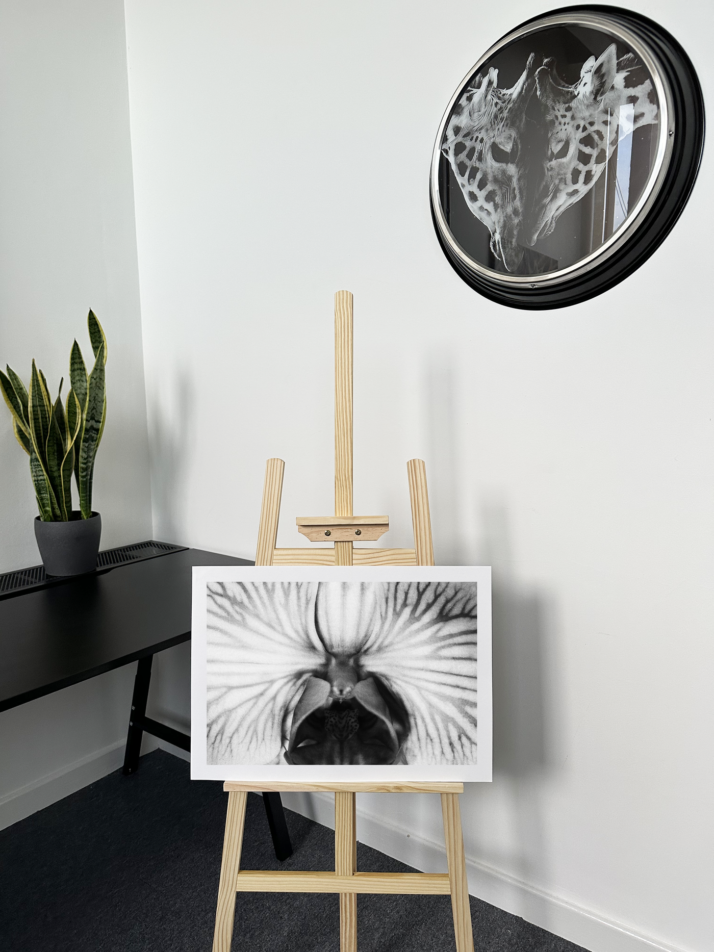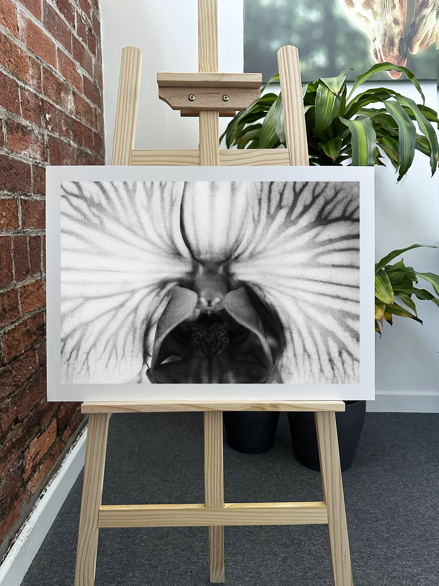 Our premium printing techniques ensure that every nuance of colour and detail is faithfully reproduced on the Fine Art paper. The matte finish reduces glare, allowing viewers to appreciate the intricate structures and patterns of the orchid from any angle. The subtle texture of the Fine Art paper adds depth to the image, emphasising the velvety quality of the petals and the delicate complexity of the flower's centre.