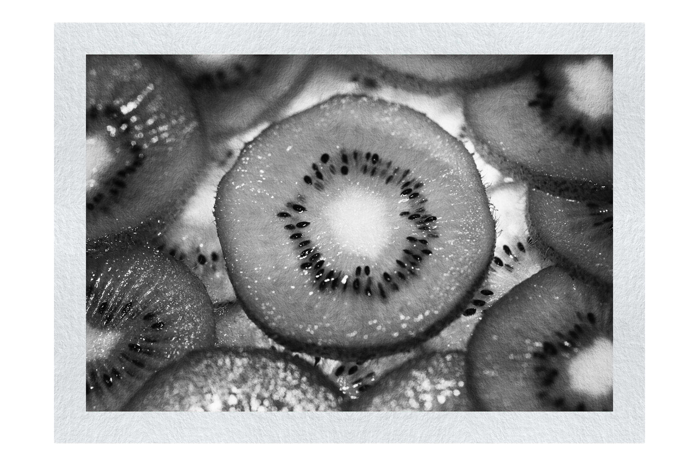 Emerald Mosaic: Kiwi in Detail - Monochrome Fine Art Print - Food Art Category
