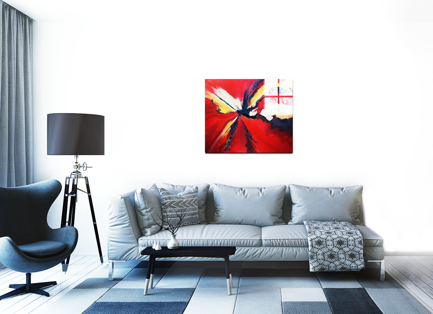 The artist's mastery of colour creates an extraordinary visual impact, with deep reds dominating the Acrylic print while strategic uses of navy blue, white, and yellow create dramatic contrast and movement. Through our precise photography and print enhancement process, we've maintained every subtle variation in tone and texture, from the explosive central focus to the fluid movements that suggest the ongoing process of life's development. The result is an image that serves both as a striking aesthetic statement and a profound meditation on natural history.