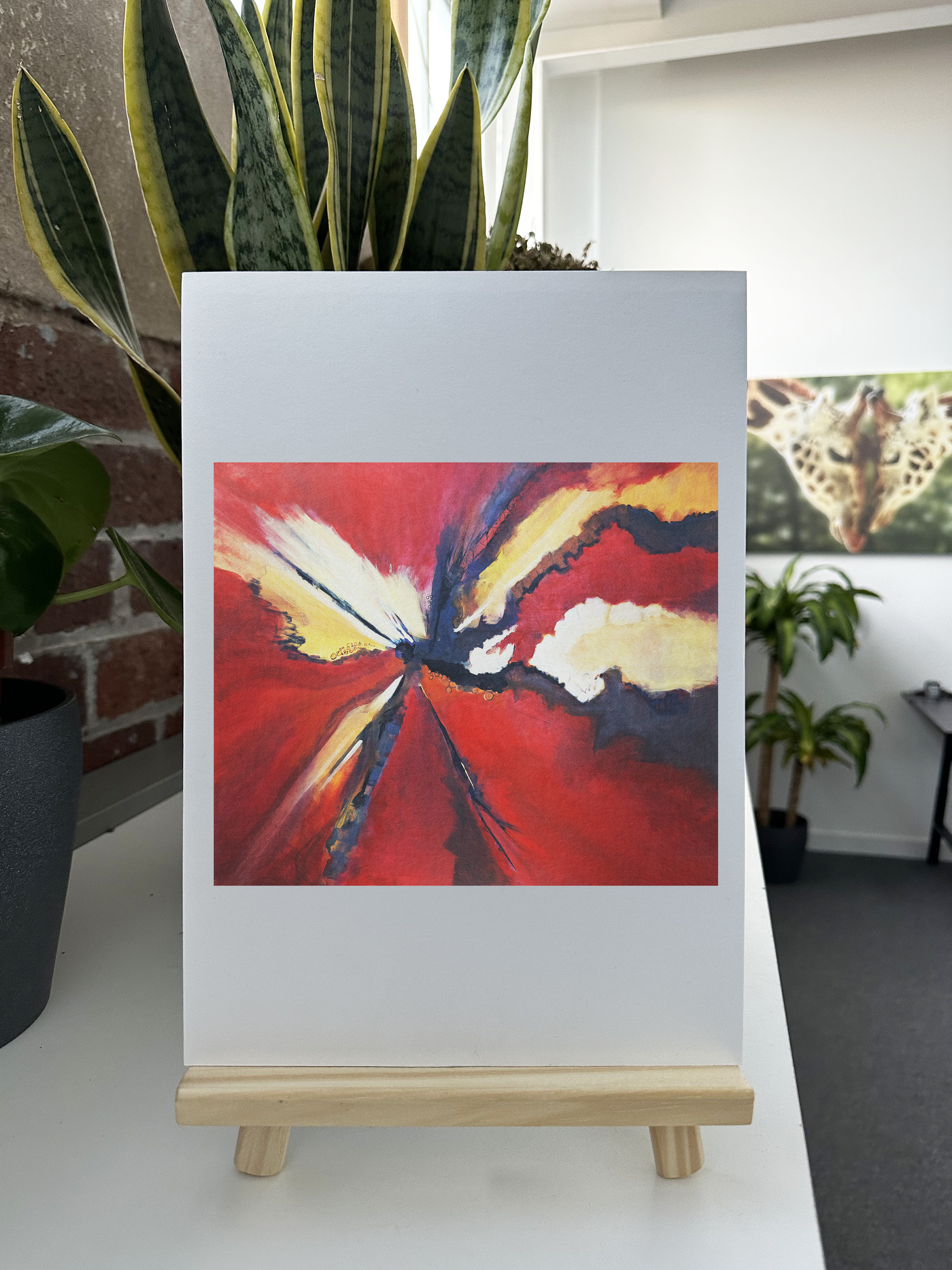 Reproduced on our premium Fine Art paper, this exploration of life's journey takes on an additional layer of contemplative power. The natural, matte finish of the Fine Art print softens the intense colours just enough to create a sophisticated gallery-quality appearance while maintaining the painting's dramatic impact. This piece would make a striking statement in any space where its meditation on origins and evolution can inspire deep reflection, from academic institutions to contemporary homes seeking artwork that combines visual impact with intellectual depth.