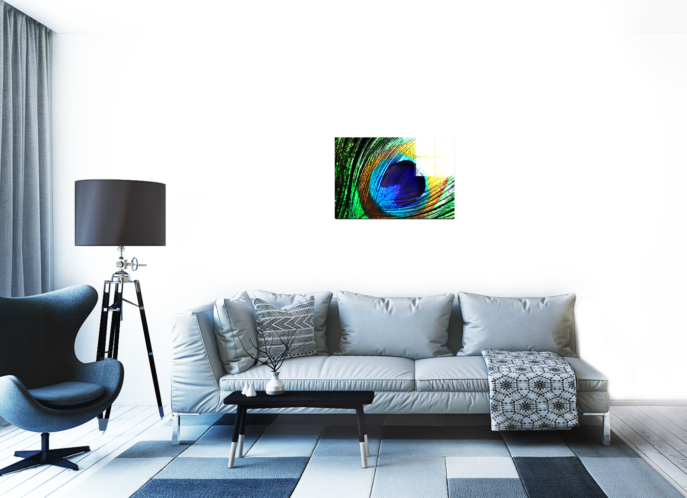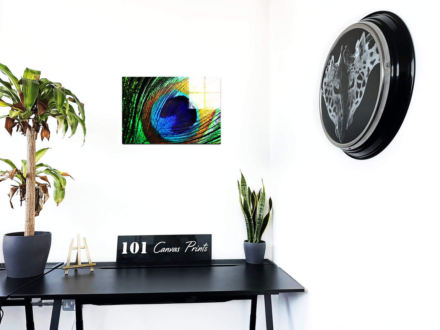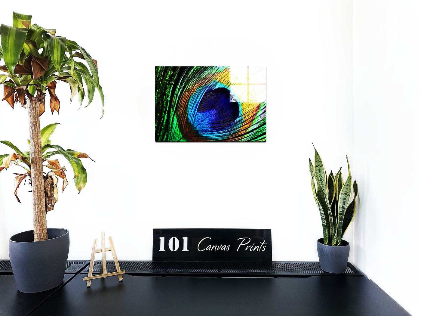 When produced as an acrylic-set print by the expert 101 Canvas Prints team, this image truly comes to life. The glossy finish of the Acrylic enhances the natural sheen of the feather, intensifying its colours and creating a sense of depth that makes the image appear to float off the wall. This medium accentuates the vibrant hues and brings out the subtle variations in tone and texture. The result is a piece that would make a striking focal point in a modern living space, upscale office, or anywhere that could benefit from a touch of natural elegance. Its contemporary look makes it particularly well-suited to minimalist or ultra-modern interiors where its vivid colours can take centre stage.