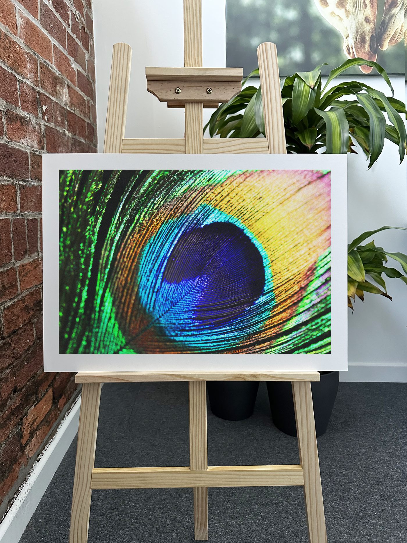 This stunning close-up of a peacock feather captures the intricate beauty of nature in exquisite detail. The image, expertly framed by the 101 Canvas Prints photography team, focuses on the iconic 'eye' of the feather, showcasing its mesmerising patterns and sumptuous colours. The composition draws the viewer in, inviting them to explore the delicate structures and gradients that make up this natural wonder.