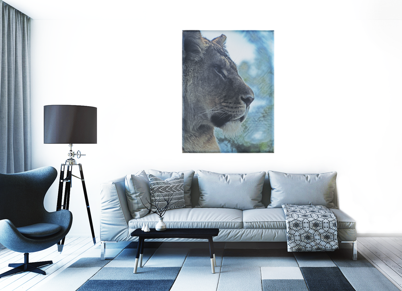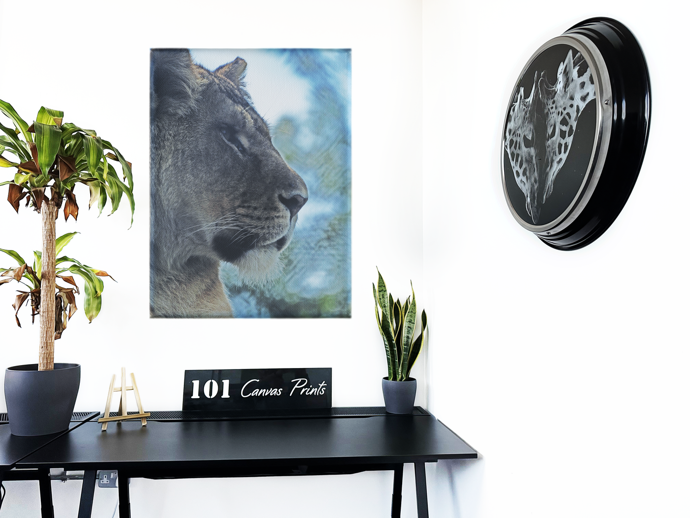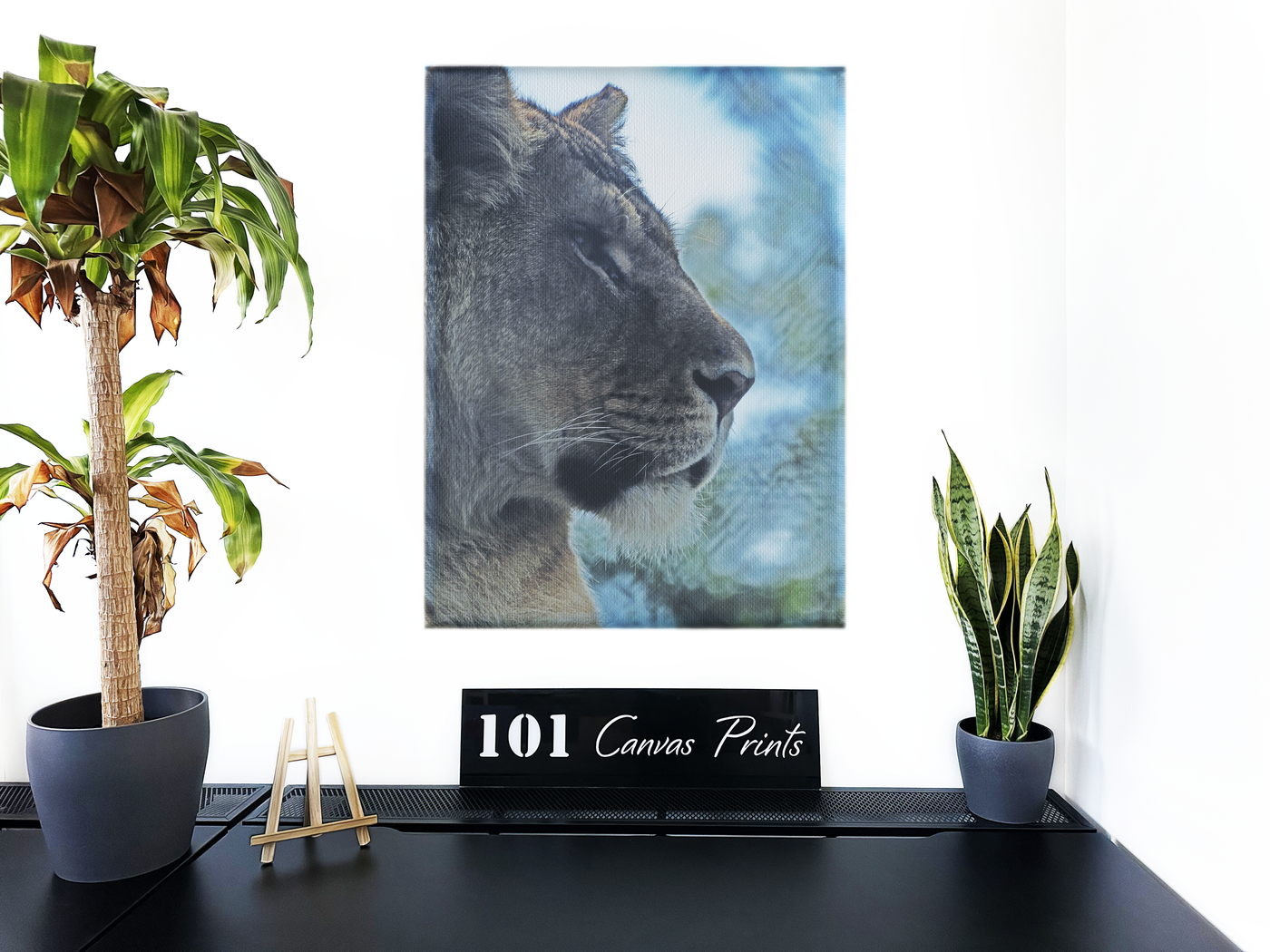 This lioness Canvas print is sure to be exhilarating in your home or office. The portrait will draw you in with her intense and beautiful eyes, then keep you engaged with the rest of her gorgeous and detailed face. A great gift, especially for lion lovers!
