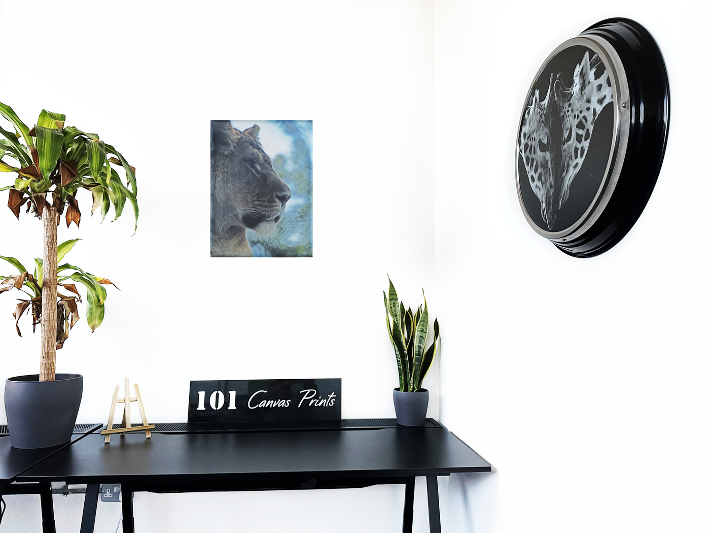 This lioness Canvas print is sure to be exhilarating in your home or office. The portrait will draw you in with her intense and beautiful eyes, then keep you engaged with the rest of her gorgeous and detailed face. A great gift, especially for lion lovers!