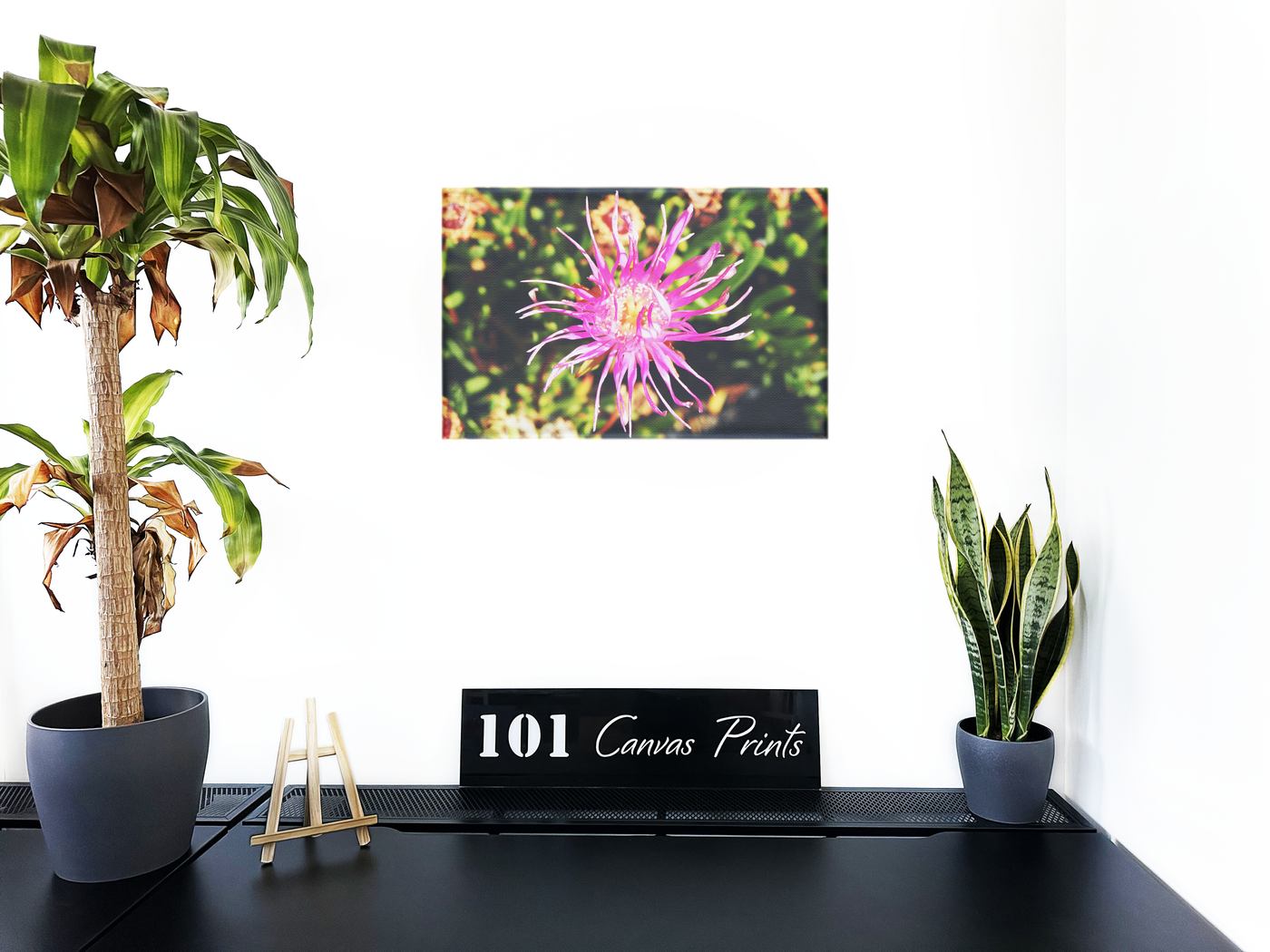 The Canvas medium beautifully captures the texture and detail of this wild beauty. Its matte finish softens the vibrant colours slightly, giving the print a more natural, organic feel that perfectly suits the subject matter. Our team at 101 Canvas Prints has worked diligently to ensure every nuance of the photographer's original vision is preserved, from the fine details of the flower's structure to the subtle variations in the background foliage. This piece would make a stunning addition to a living room, sunroom, or any space where its natural vibrancy can bring a touch of wild beauty to your décor.