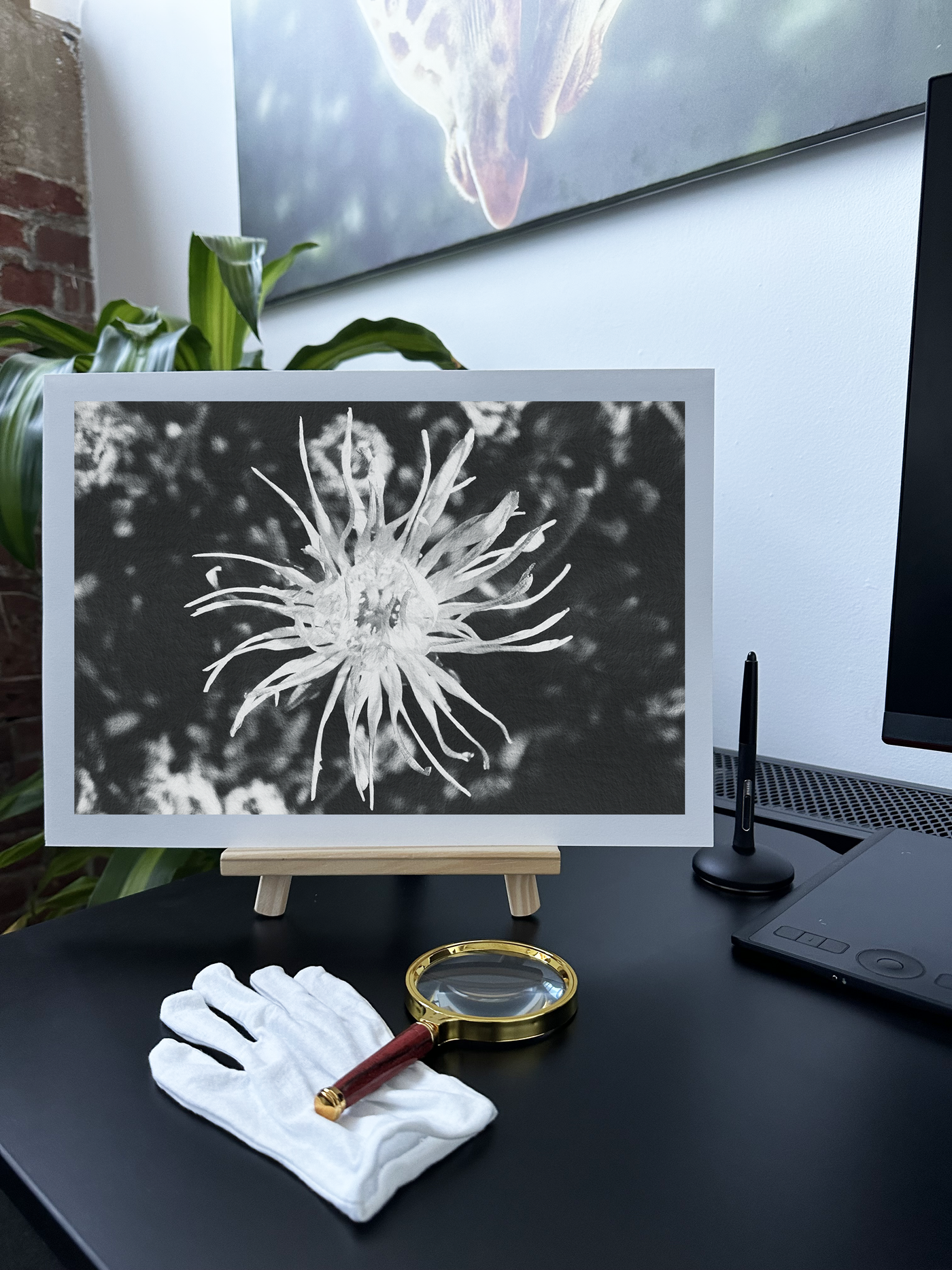Our carefully handmade monochrome fine art prints are produced on Hahnemühle 308 matte cotton rag paper using Epson archival inks for exceptional detail and color accuracy. Each print features clean, precise edges and a textured surface that brings depth and richness to your chosen artwork, creating a gallery-worthy presentation.