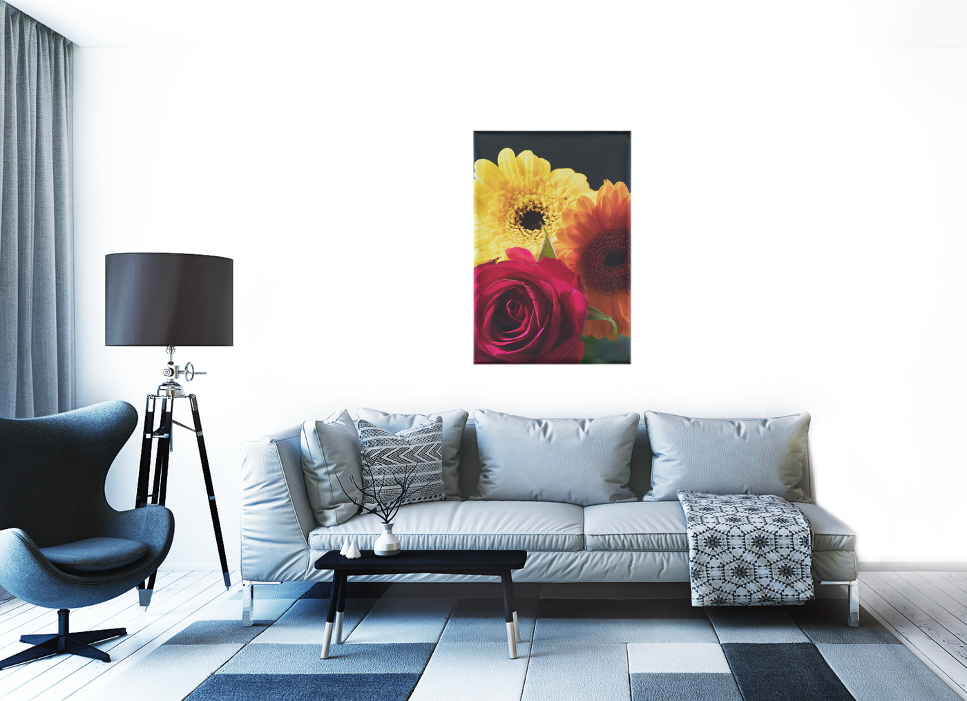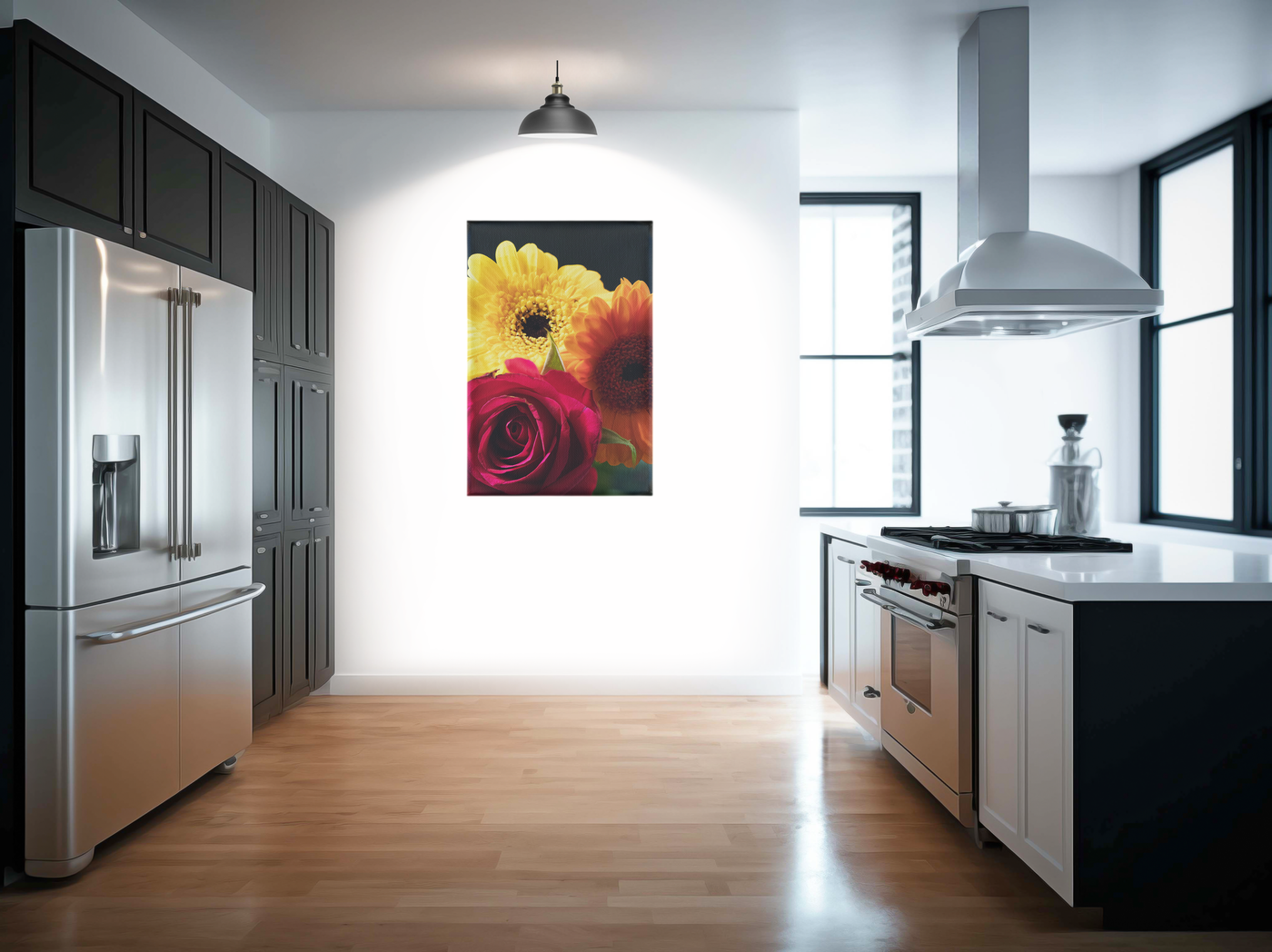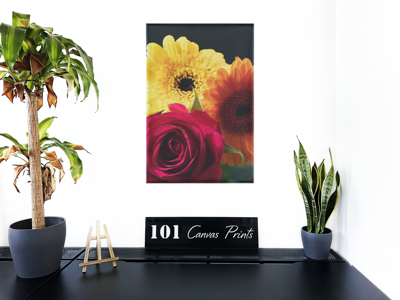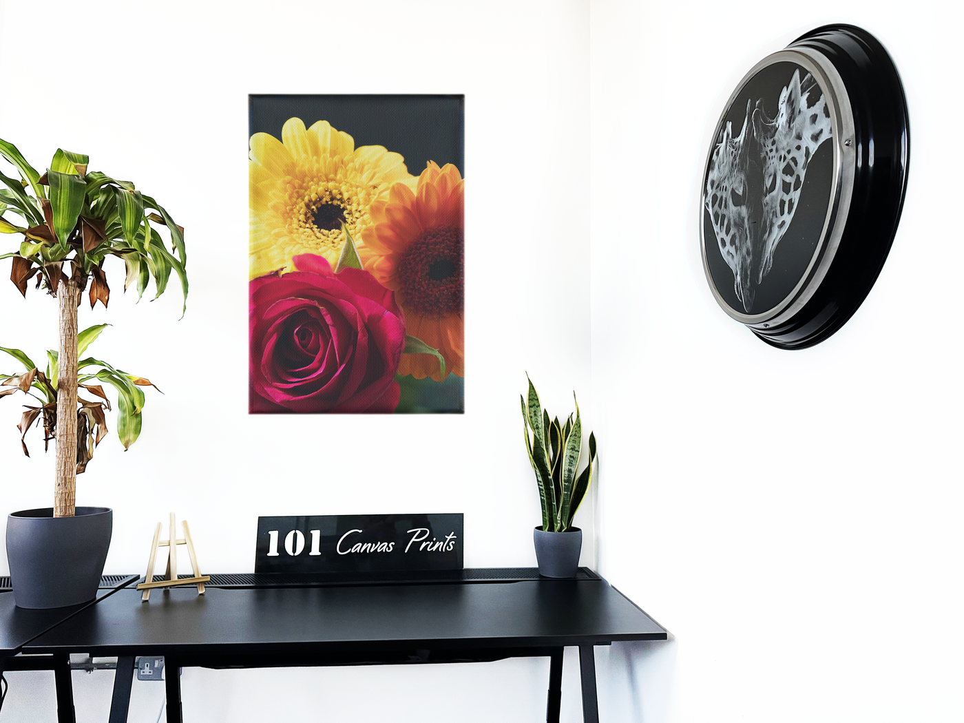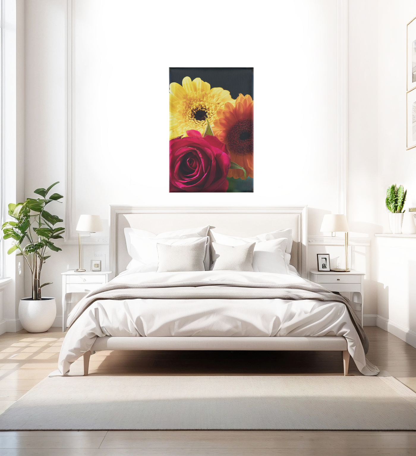 Reproduced on our premium Canvas material, this floral arrangement takes on an additional layer of artistic refinement. The natural, matte finish of the Canvas softens the intense colours just enough to create a sophisticated gallery-quality appearance while maintaining the photograph's vibrant impact. This piece would make a stunning addition to any space where its celebration of natural beauty can lift spirits and add warmth, from a contemporary living room to a professional office environment.