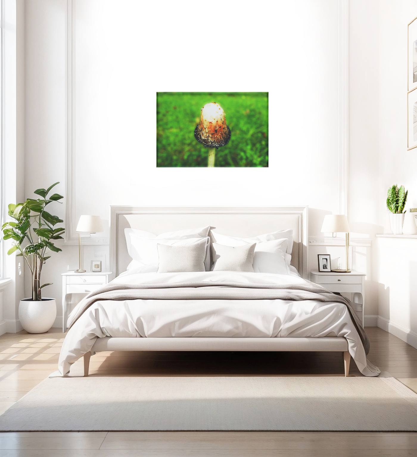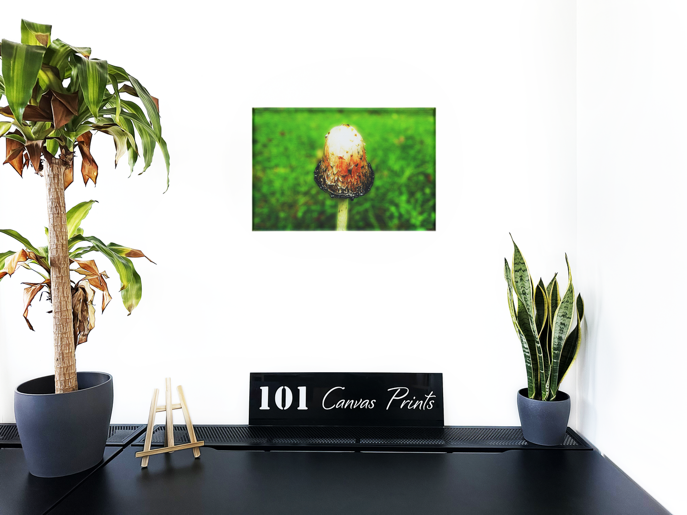 The Canvas print medium enhances the photograph's organic qualities, its texture complementing the natural subject matter. The matte finish softens the contrast between the mushroom and its background, creating a harmonious, almost painterly effect. 101 Canvas Prints' photography team has captured a moment of quiet beauty in nature, producing a piece that brings the wonder of the forest floor into focus. This print is ideal for nature lovers' homes, rustic-themed spaces, or any area where one wishes to introduce a touch of woodland charm and contemplative calm.