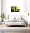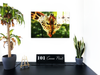 The vivid detail of the foreground, mixed with the warm yellow and brown glow of the beautiful animals' coat, is drenched in a deep and romantic green wash that creates an interesting and beautiful composition. This amazing piece is guaranteed to impress in any room that you choose to hang it.