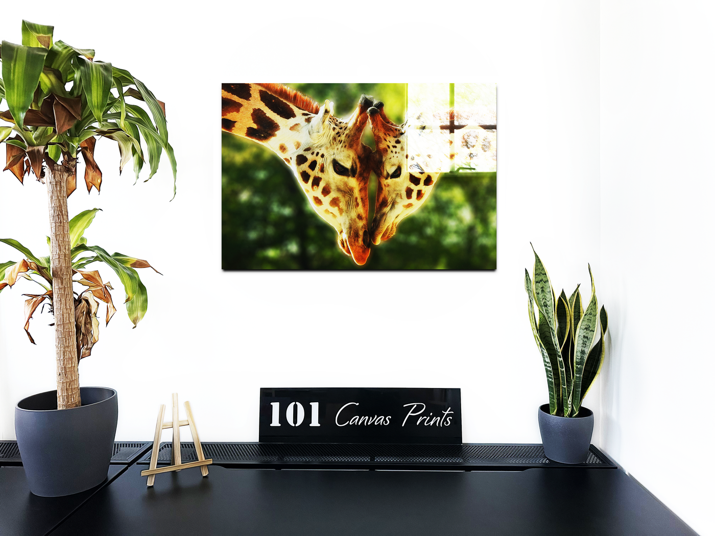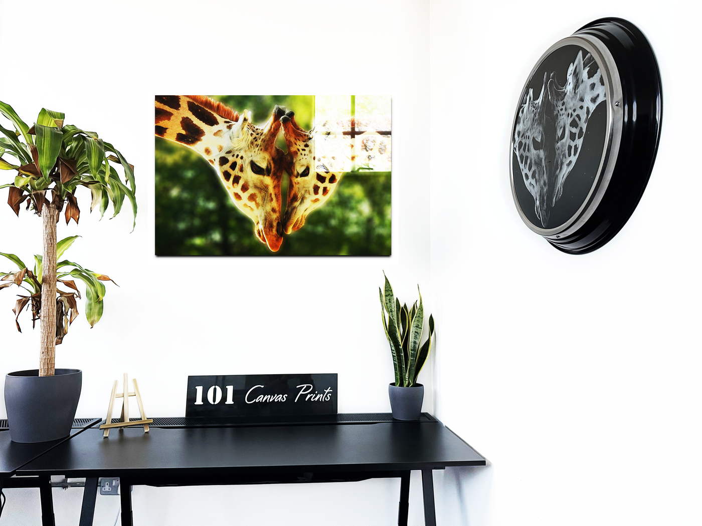 This stunning and timeless moment captured in the highest quality by the 101 Canvas Prints wildlife photography team will impart the sweet affection of love upon the viewer with this cheerful Acrylic print of two Soul Mate Giraffes.